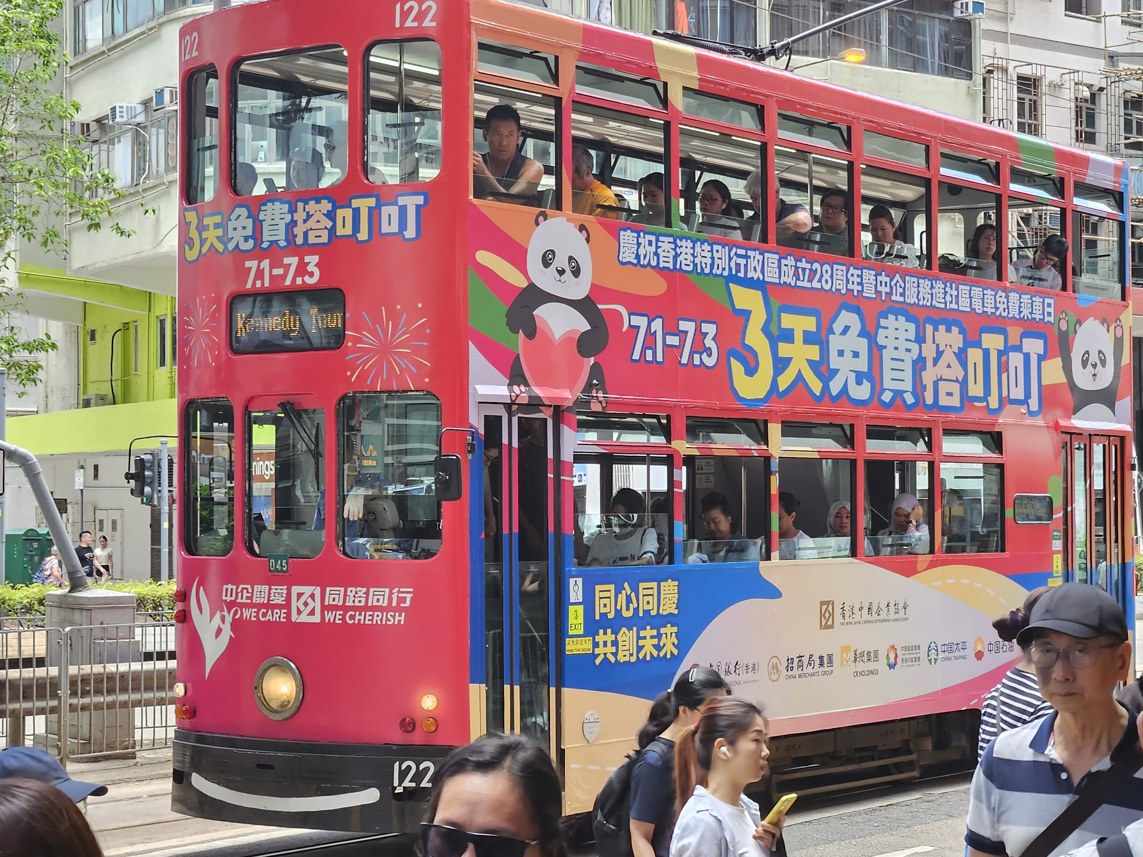 大公文匯全媒體報道,今年是香港回歸祖國28周年,香港中國企業協會舉行慶祝香港特別行政區成立28周年暨中企服務進社區電車免費乘車日,邀請市民和來港遊客於7月1日至3日期間,一連三日免費搭電車(叮叮車)。