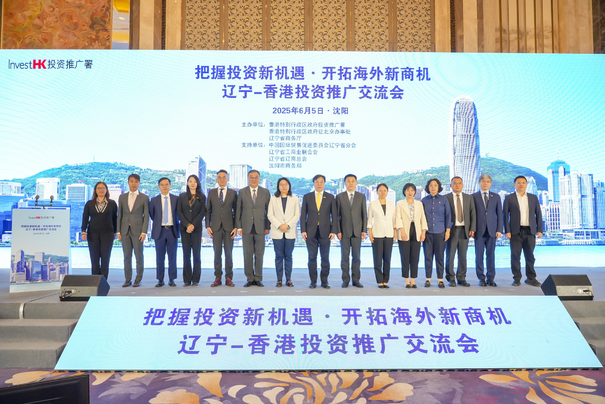 由香港政府投資推廣署、香港政府駐北京辦事處及遼寧省商務廳聯合主辦的「遼寧—香港投資推廣交流會」6月5日在遼寧瀋陽舉辦。本次交流會以「把握投資新機遇,開拓海外新商機」為主題,吸引了來自遼港兩地的政府官員、企業代表及媒體人士約160人參會。