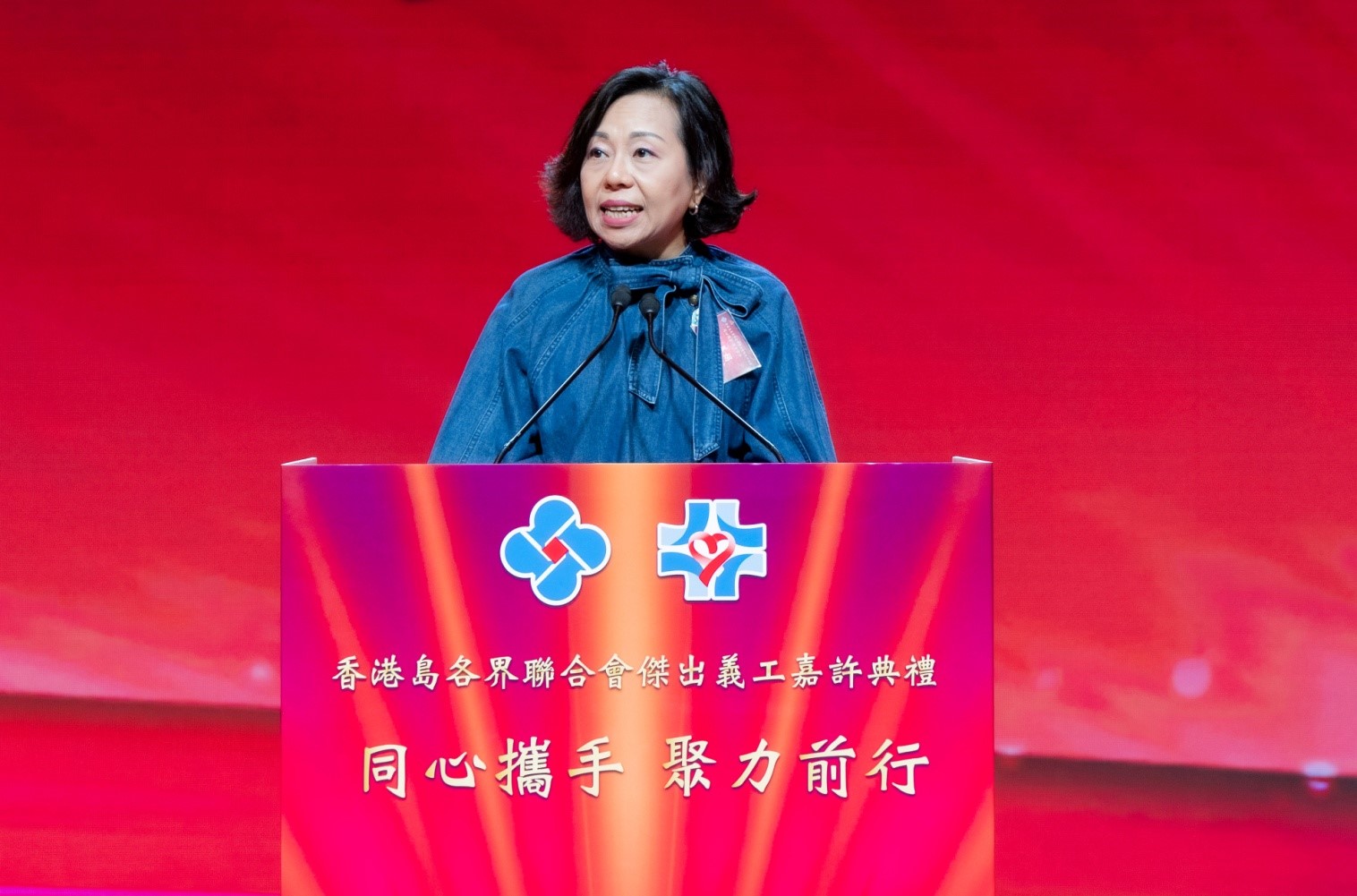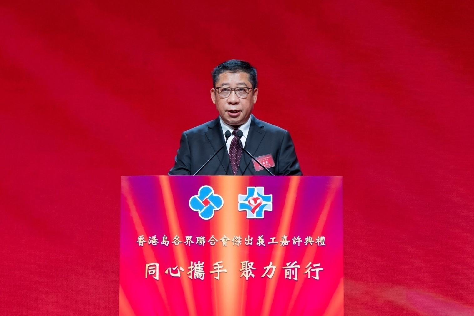 大公文匯全媒體報道,6月8日,由香港島各界聯合會(下稱「港島聯」)、香港島各界社會服務基金會舉辦的「『同心攜手 聚力前行』傑出義工嘉許典禮」在香港會議展覽中心隆重舉行,中央政府駐港聯絡辦副主任劉光源,民政及青年事務局局長麥美娟,中央政府駐港聯絡辦港島工作部部長薛惠君,全國政協委員、立法會議員、香港島各界聯合會理事長、香港島各界社會服務基金會主席蘇長榮出席活動並擔任主禮嘉賓,537名獲嘉許義工和港島地區社團首長、地區人士、同鄉團體代表共1500人參加典禮。