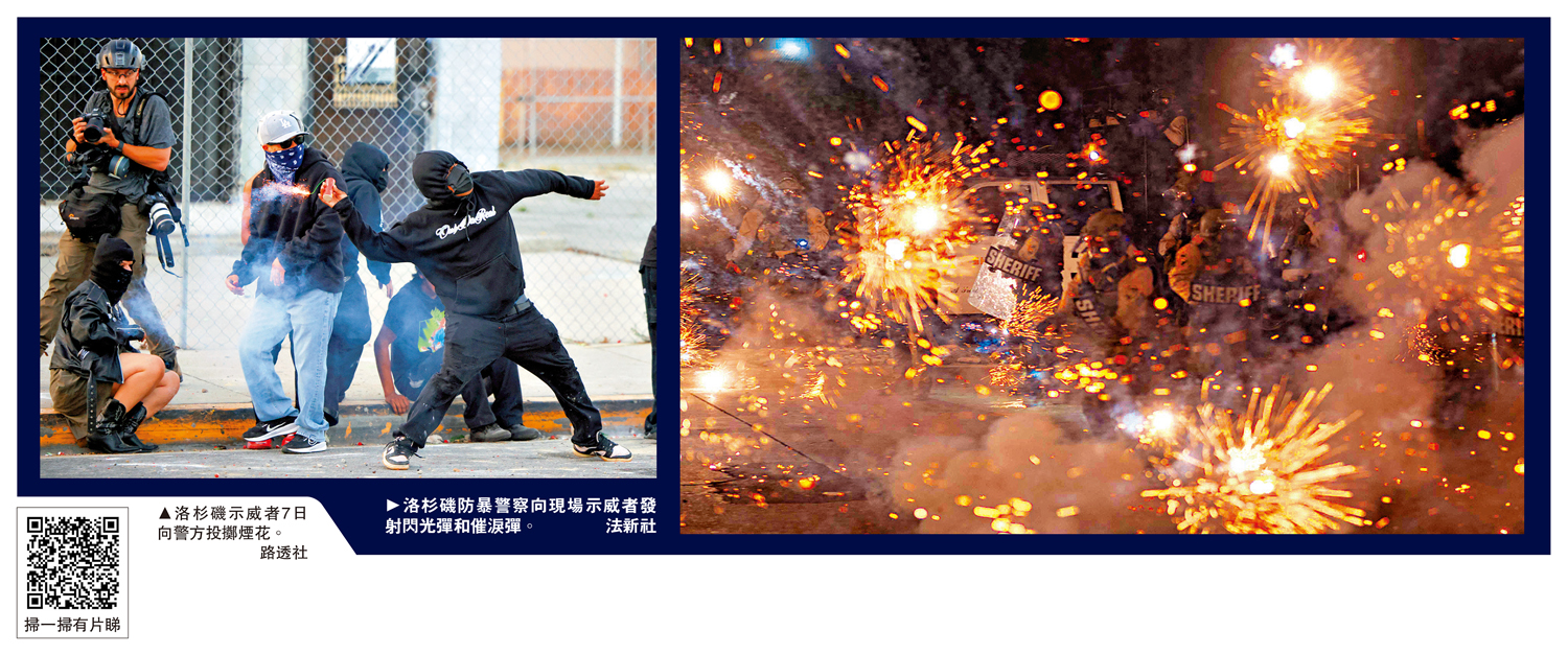 特朗普7日在社交媒體發文,抨擊民主黨籍加州州長紐森和洛杉磯市長巴斯「不能履行職責」,聯邦政府將介入,解決「騷亂和劫掠問題」。他當日簽署一份備忘錄,下令向洛杉磯部署2000名加州國民警衛隊人員,以協助聯邦執法人員。