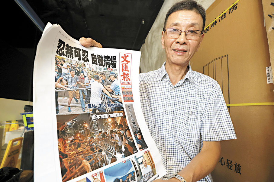 採訪期間,陳向陽向記者展示一份珍藏的2014年10月香港《文匯報》頭版,報道反非法「佔中」行動。當時他與其他市民合力拆除非法「佔中」者設置的鐵馬,被香港文匯報記者精準捕捉到這一動人瞬間,「我不是什麼英雄,只是對亂港行為看不過眼。」從2014年反非法「佔中」到2019年反黑暴,陳向陽始終站在維護秩序的一方。