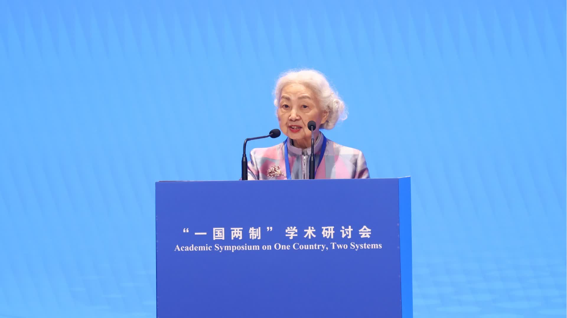 梁愛詩發言重點闡述了「一國兩制」的時代意義與世界意義。談及「一國兩制」世界性意義,梁愛詩指出,「一國兩制」所體現的和平、包容、開放與共享的價值觀,有助於解決國際爭端,無論是領土爭議還是貿易糾紛。香港作為首個實行「一國兩制」的特別行政區,與內地及世界有密切的聯繫,是最合適推廣「一國兩制」理念的地方,亦能與全球分享我們過去成功實施此制度的經驗,為解決全球性問題貢獻中國智慧和中國方案。