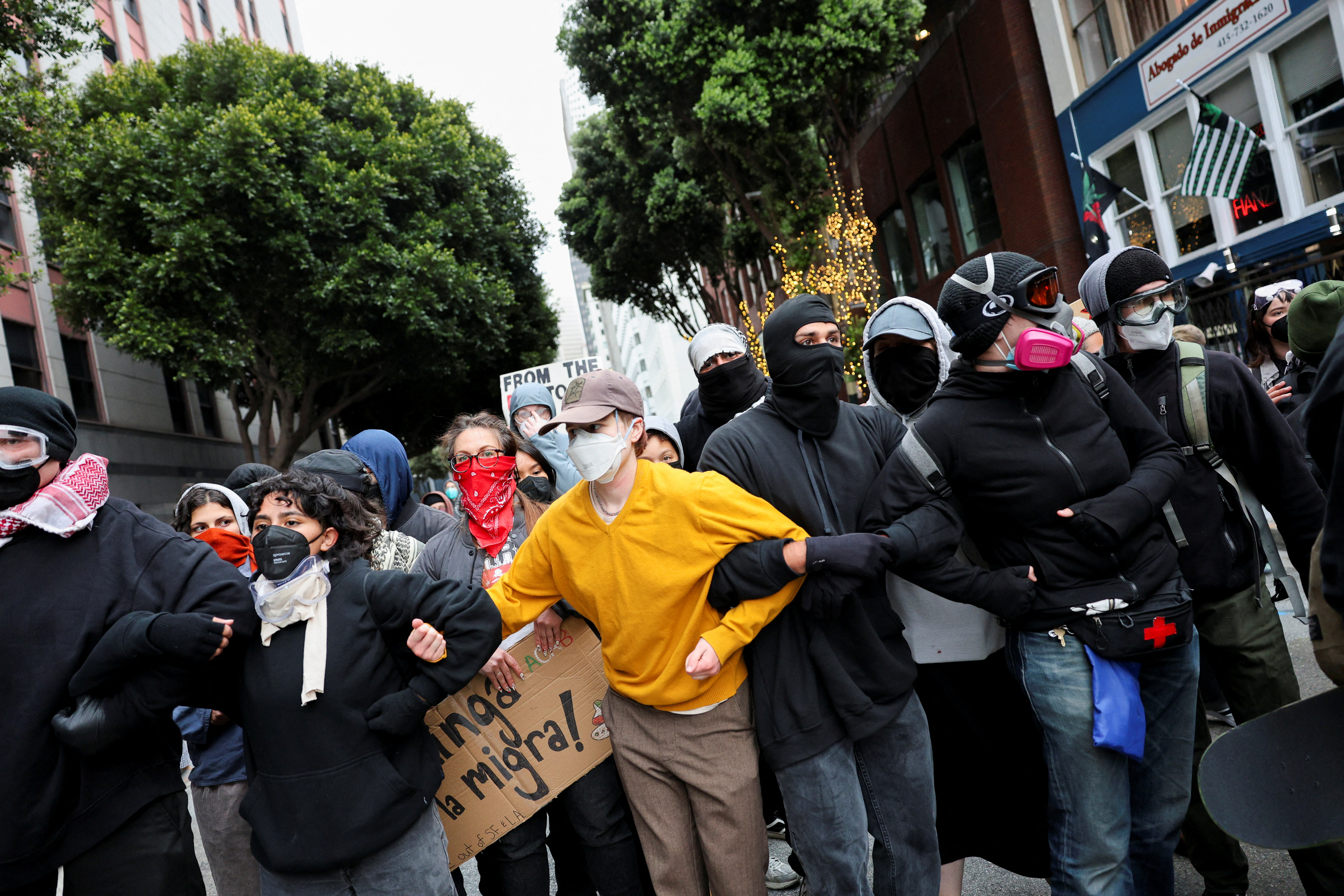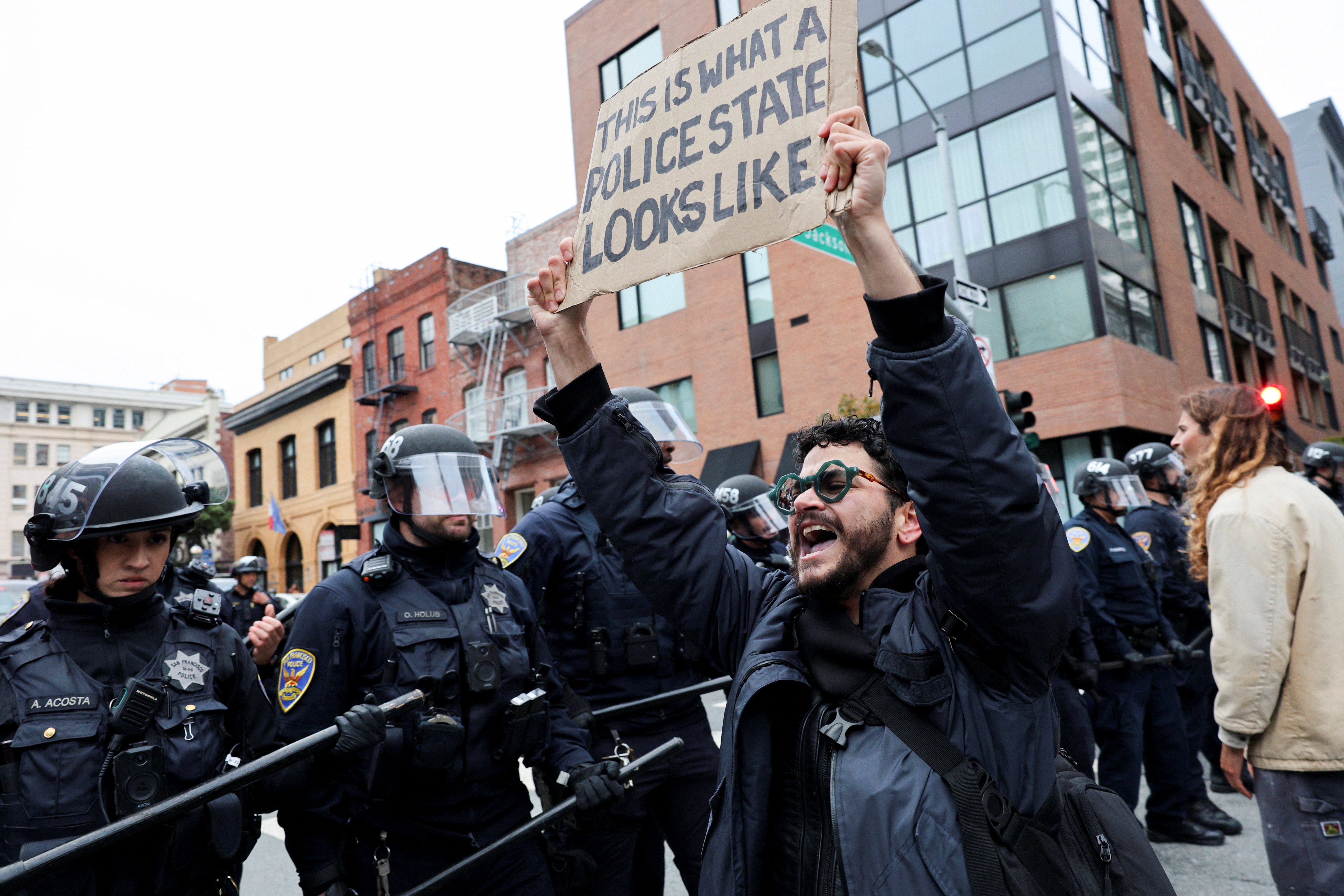 大公文匯全媒體報道,據央視新聞報道,6月8日,美國加州舊金山市民眾走上街頭舉行抗議遊行。抗議者與警方進行對峙。