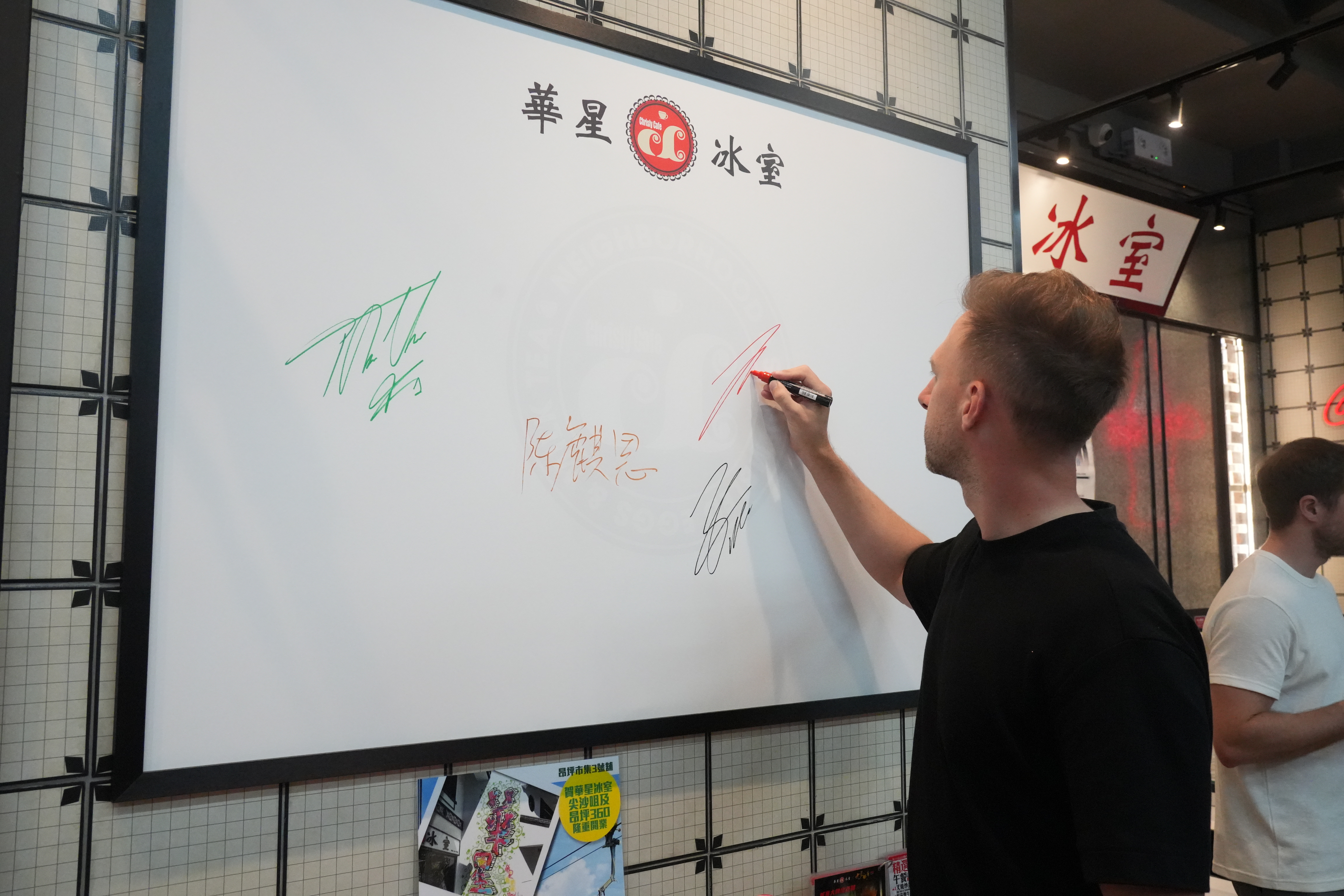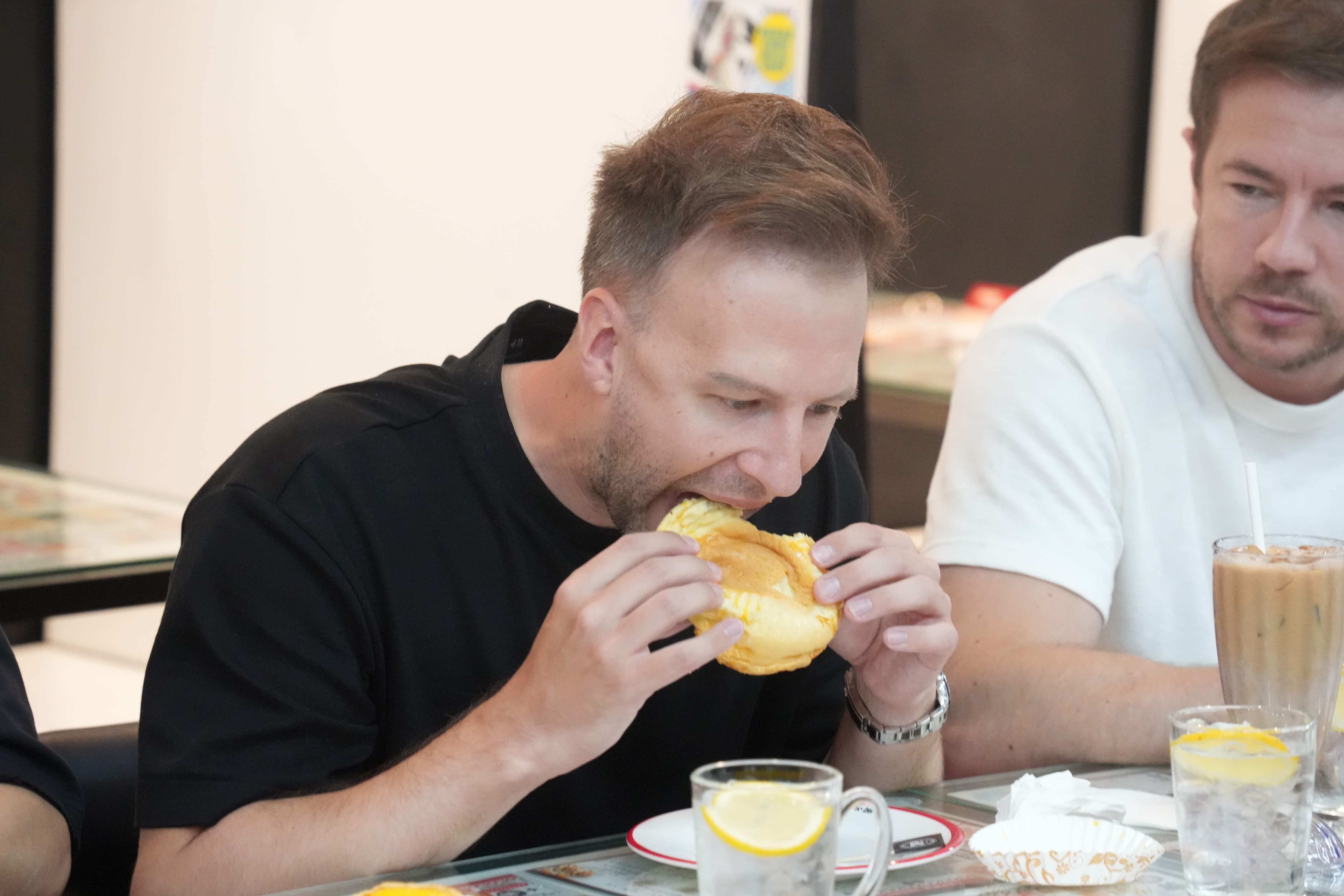冰室特地為球星們準備菠蘿油、蛋撻、紅豆冰、奶茶等經典美食和飲品。卓林普隨即食指大動,用粵語大讚「菠蘿油好食」,直言自己比起蛋撻,更愛菠蘿油。相比之下,其好友利素禾斯基就似乎對蛋撻情有獨鍾,說自己在英國很喜歡吃這類小食。