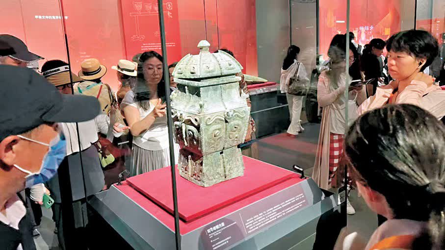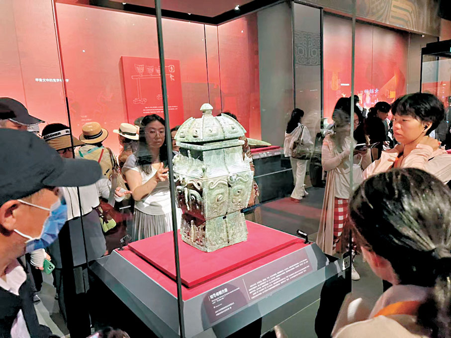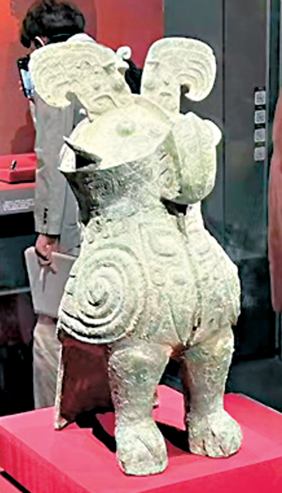 (香港文匯報 記者 郭瀚林 北京報道)「看·見殷商」展覽正於北京大運河博物館舉行,展覽匯集全國28家文博單位338件(套)珍貴文物,涵蓋甲骨、青銅器、陶器、玉器等類別,全景呈現了殷商文化面貌。亞長牛尊等殷商青銅巔峰之作組團亮相,婦好鴞尊、亞丑鉞這兩對「兄弟文物」也在展廳「團聚」。值得一提的是,影片《哪吒2》中兩隻結界獸的文物原型被特地「請」到了現場,東海龍王的龍牙刀、闡教至寶天元鼎等的「本尊」也可以在展覽中見到。