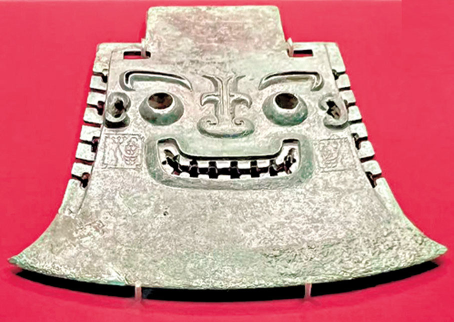 策展人、首都博物館研究館員高紅清介紹,隨着湖北盤龍城遺址、江西新干大洋洲遺址及湖南殷商文物的發現,還有三星堆出土器物與中原器物呈現相似性,說明在三千多年前,中國各地先民已經開始了交流和融合。「這次我們從江西借到了獸面紋青銅胄、蟬紋青銅大刀,也展示了來自湖北盤龍城、北京琉璃河的一批商代精品青銅器。商代的文化,正是通過青銅器技術得到擴散傳播,在各地經『和而不同』的過程實現了文化整合。」