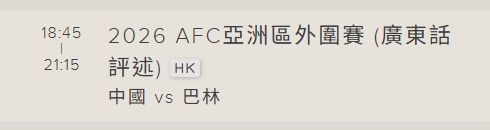 值得一提的是,今晚「球迷狂歡」亦有亞洲盃外圍賽第三輪、港隊首次於啟德主場出擊迎戰印度,香港電台31將於今晚8時獨家直播該場賽事;而國足vs巴林則會於傍晚6時45分於香港電台32開始直播。