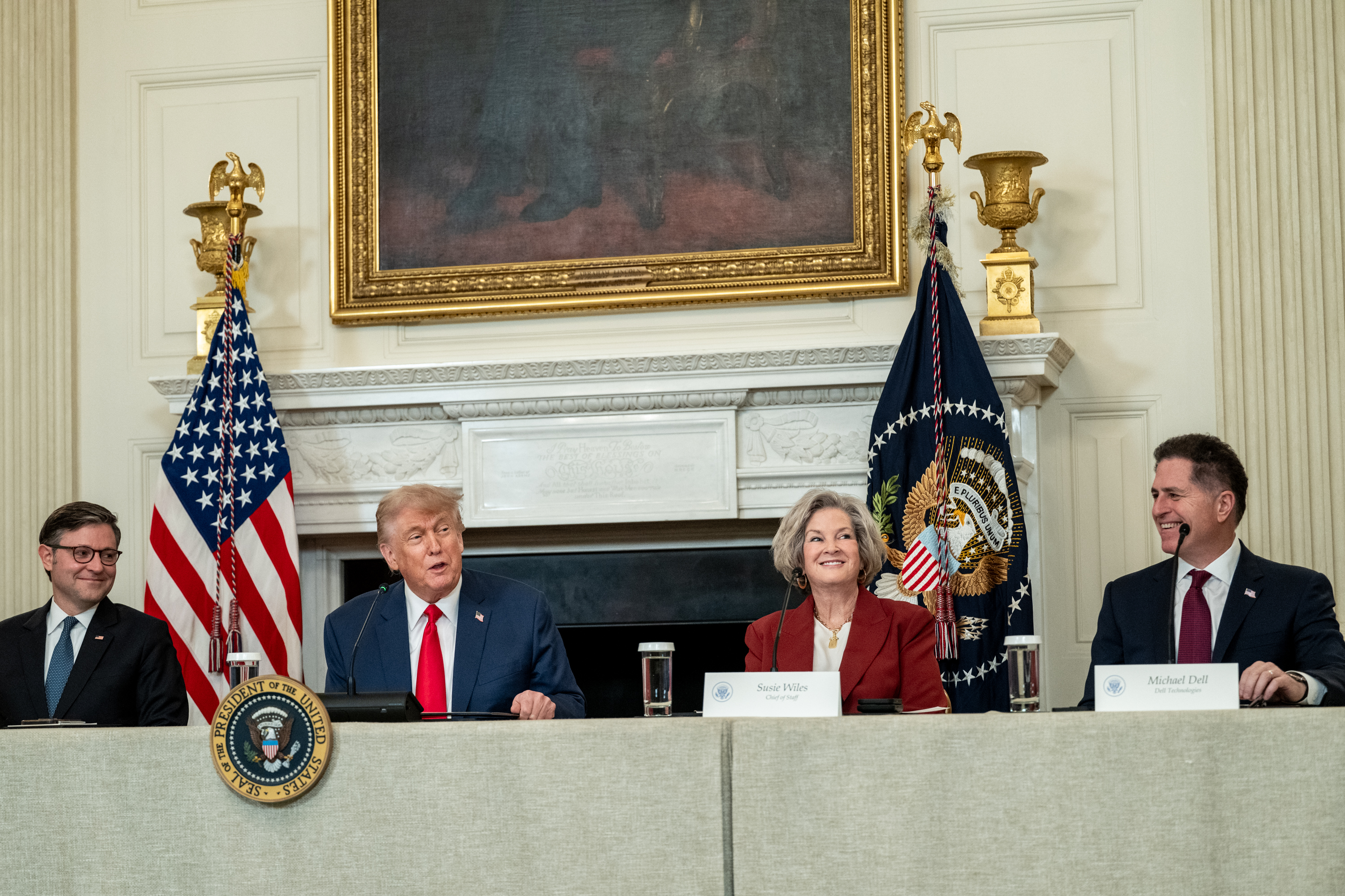 大公文匯全媒體綜合美媒報道,美國總統特朗普當地時間6月9日在白宮國宴廳舉行圓桌會議,正式推出針對新生兒的「特朗普儲蓄賬戶」政策。戴爾、高盛、優步、Salesforce等十餘家科技金融巨頭的高層悉數到場,共同見證這項被稱為「第二任期最重要政策之一」的全民投資計劃落地。