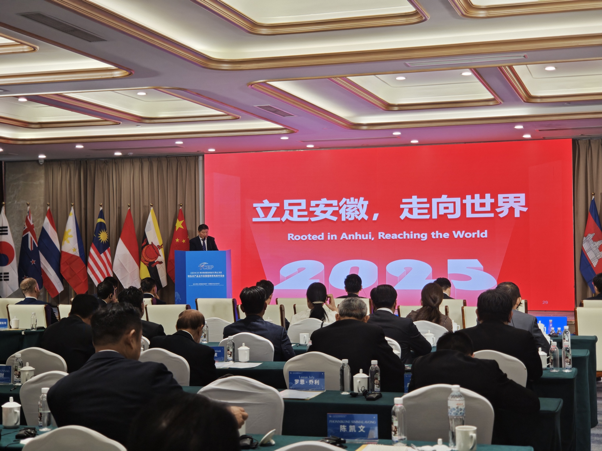其中,在「特色農產品合作發展暨跨境電商對話會」上,安徽省政協副主席孫雲飛,泰國駐上海總領事彬娜·安平樂等出席會議。10餘國駐華使領館和RCEP地方政府、香港地區代表,以及商務部國際司及安徽省直有關單位人員、企業負責人等共100餘人參加。