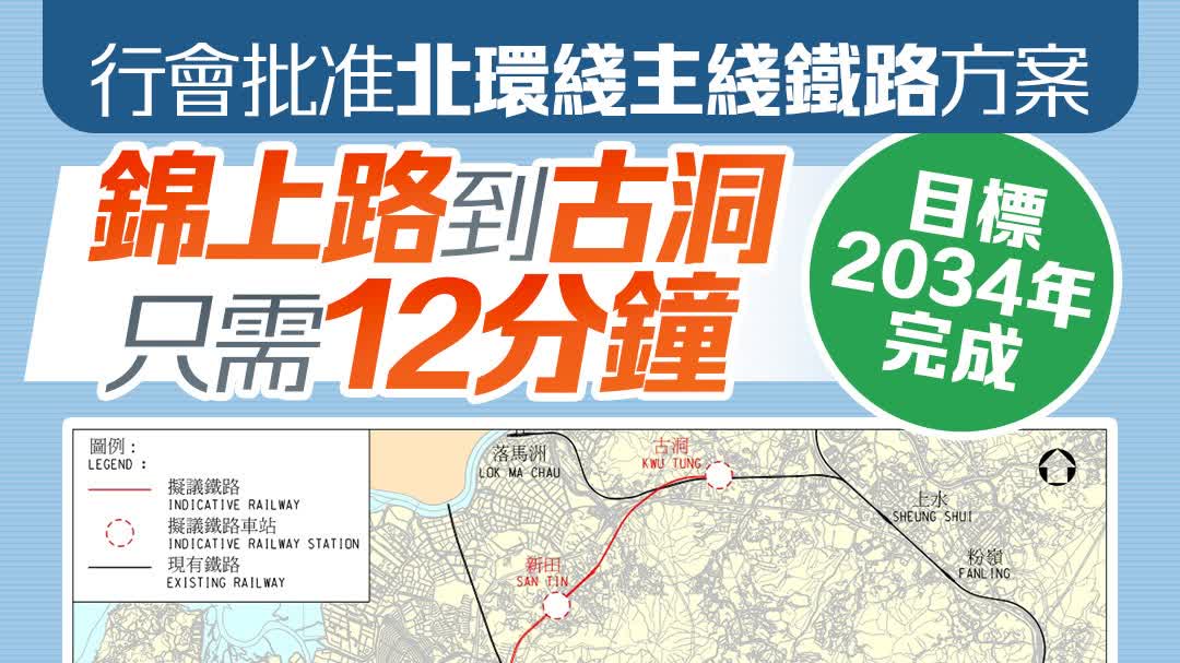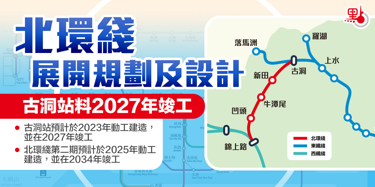 此外,北環綫主綫前期正有序進行,預計2034年完工。屆時,全長約10.7公里的北環綫主綫將連接東鐵綫及屯馬綫;古洞站與錦上路站之間將設有新田、牛潭尾及凹頭三個中途站。