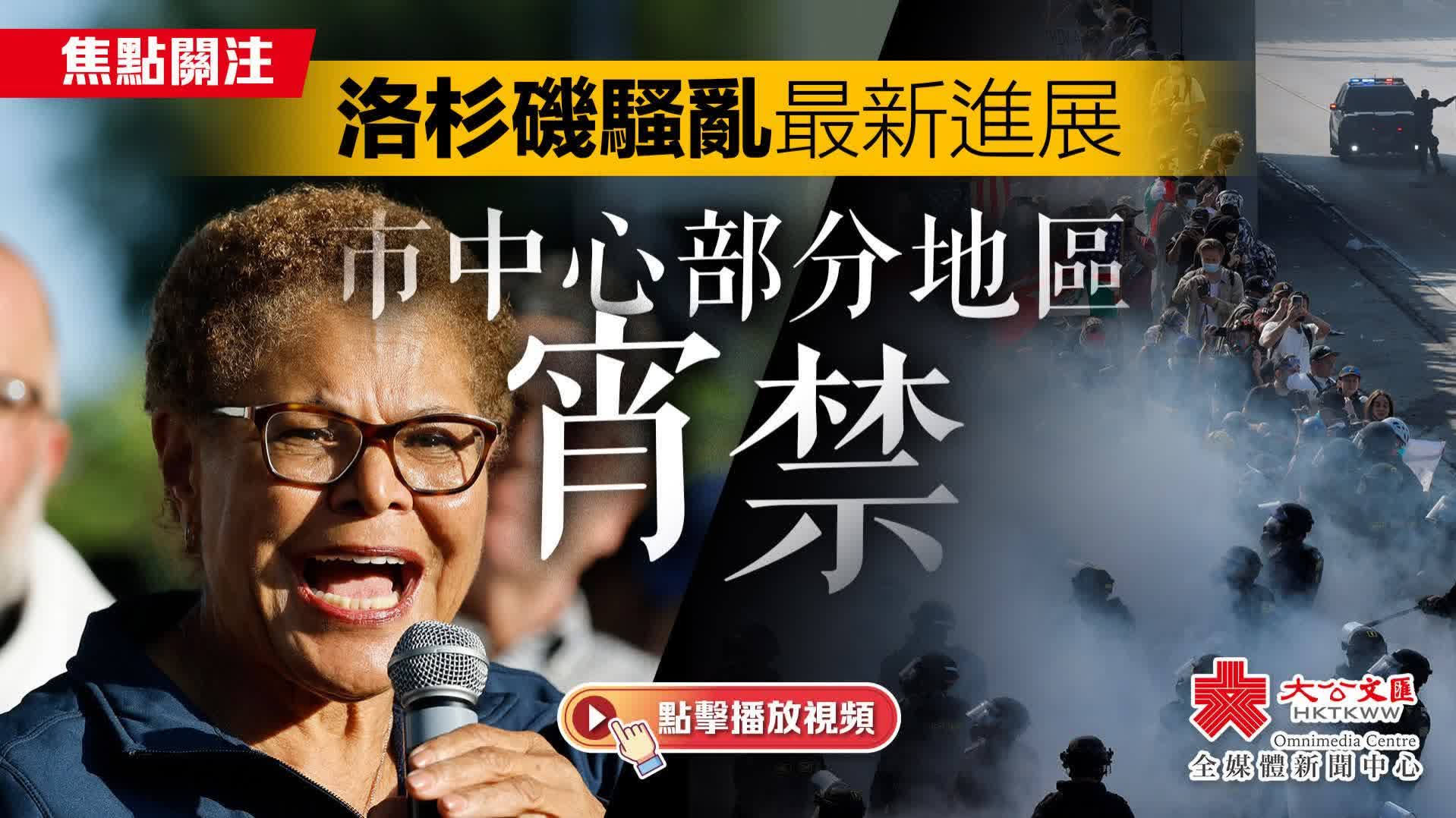 美國洛杉磯市長巴斯(Karen Bass)10日傍晚在新聞發布會上宣布對洛杉磯市中心部分地區實施宵禁。鑑於示威者與執法人員近日發生激烈衝突,並在深夜和凌晨時分發生大規模的破壞和搶掠事件,宵禁將於同日晚上8時開始,持續至當地時間11日(周三)早上6時,宵禁範圍適用於市中心內一個1.6公里乘1.6公里(1平方英里)的區域。