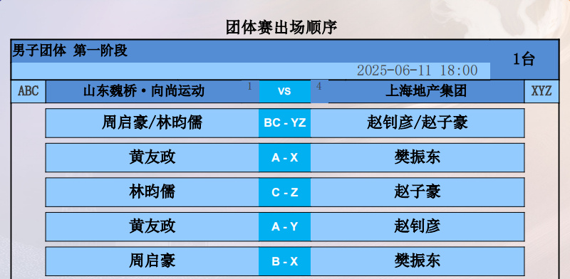 大公文匯全媒體報道,2025乒超聯賽第一階段繼續進行,在今日(11日)晚間進行的男子團體比賽中,山東魏橋·向尚運動對陣上海地產集團。在剛剛公布的團體賽出場名單中,王楚欽、梁靖崑今晚不出場。