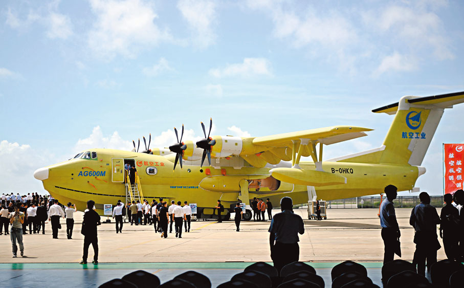 AG600是目前全球起飛重量最大的民用水陸兩棲飛機。該機相繼突破了高抗浪船體設計、複雜船型機身製造等多項關鍵技術,被譽為一架「會游泳的飛機」、一艘「會飛的船」。全機5萬多個結構和系統零部件全由中國供應商提供,實現了包括發動機、關鍵機載系統在內的100%中國自研和國產配套,是中國現代民機裏國產化程度最高的機型。