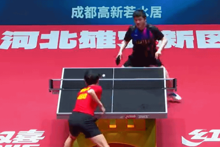 在上海地產與山東魯能6月9日的比賽中,上演了五盤拉鋸戰。比賽戰至第五盤最後一球,樊振東和閆安心有靈犀地打出一記趣味十足的「快樂球」,最終以繞桌「表演」的方式結束了本場比賽。