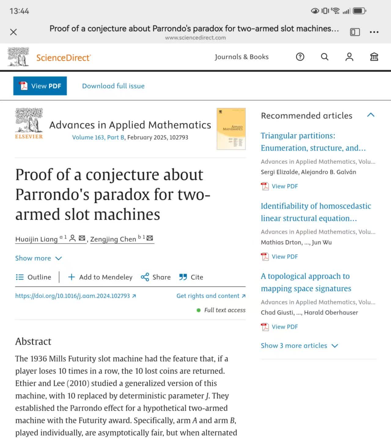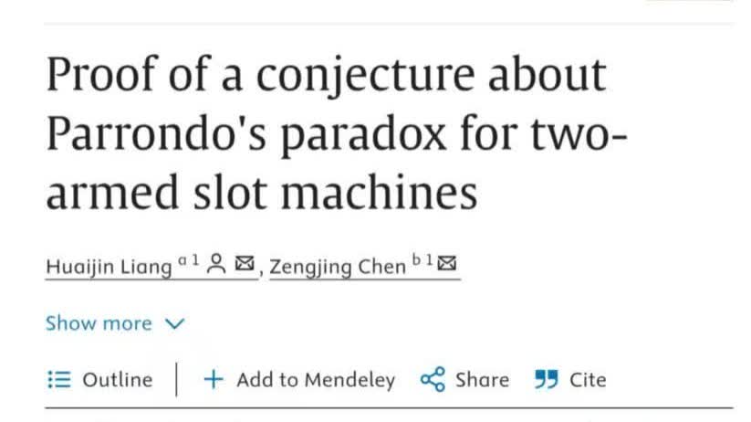 賭博贏輸問題一直是一個古老的話題。近期,山東大學陳增敬團隊用非線性大數定律成功證明了美國數學家Ethier等人提出的賭博老虎機存在「久賭必輸」現象的猜想。研究成果被國際著名期刊Adv.App.Math.(應用數學進展)接受發表。至此,陳增敬團隊與美國數學家Ethier團隊的研究成果共同證明,雙臂賭博機一定存在「久賭必輸」現象,在賭博業界產生了重大影響。