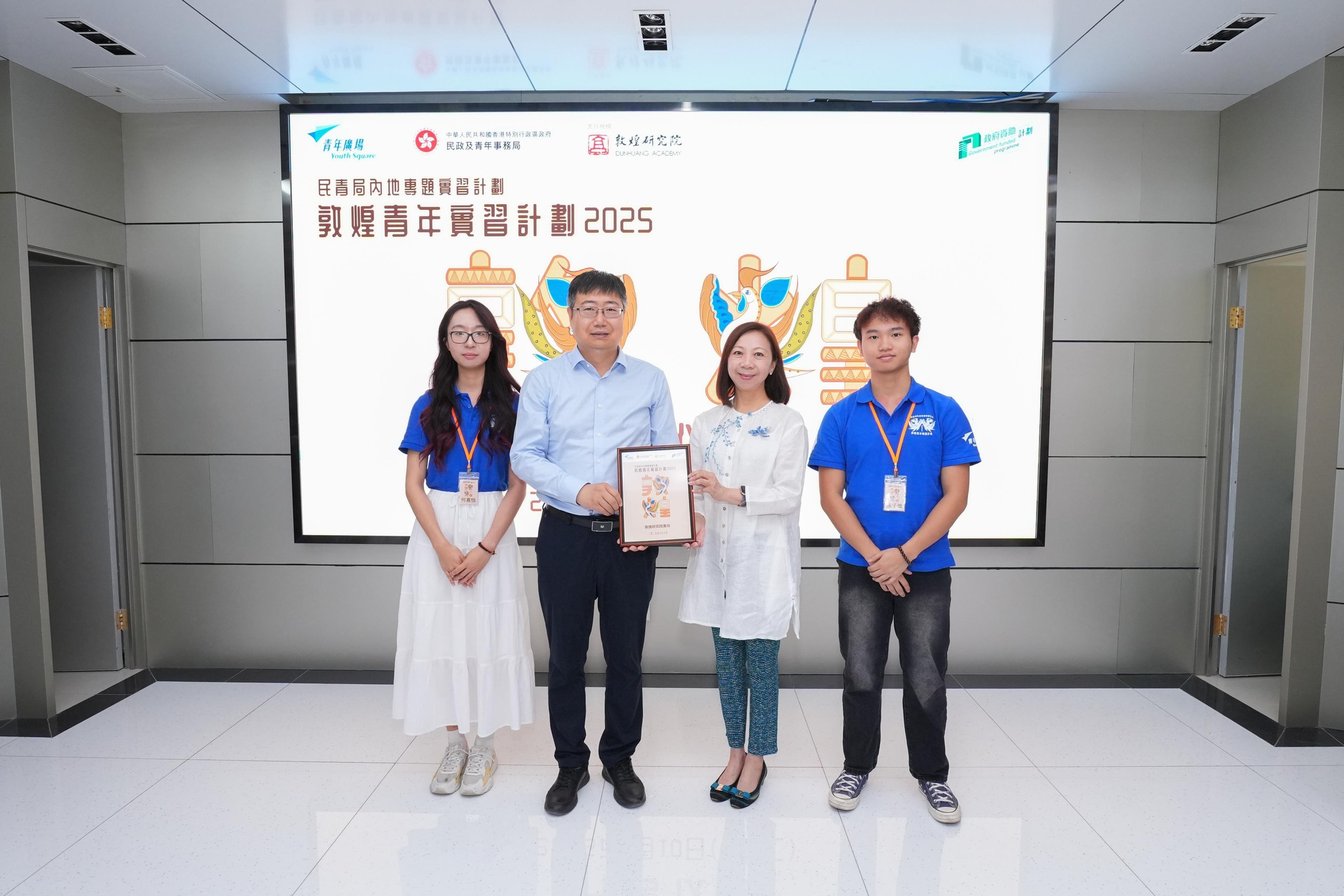 常秘感謝敦煌研究院自2018年起一直支持特區政府的青年發展工作,為香港青年提供寶貴的實習和交流機會。常秘又勉勵實習生把握今次難得機會,用心學習「莫高精神」,成為敦煌文化傳承者。