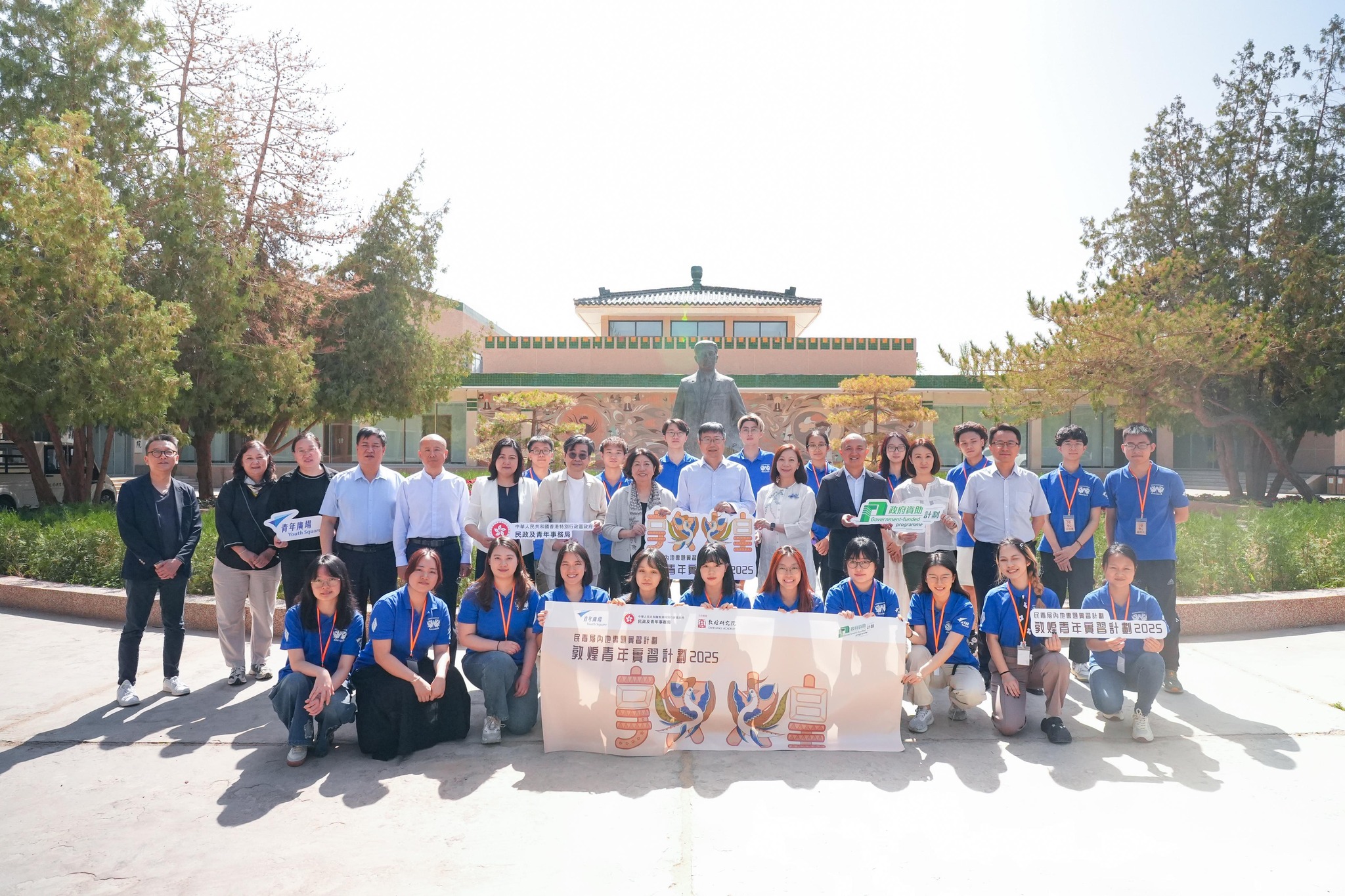 民青局常任秘書長林雪麗日前親身去到敦煌主持「民青局內地專題實習計劃」下的「敦煌青年實習計劃」開學禮,見證20位香港青年即將開展6星期的實習旅程。他們將會接受敦煌研究院的專業培訓,通過考核後成為莫高窟的實習導賞員,向世界各地遊客介紹敦煌石窟的歷史和藝術,推廣敦煌文化。