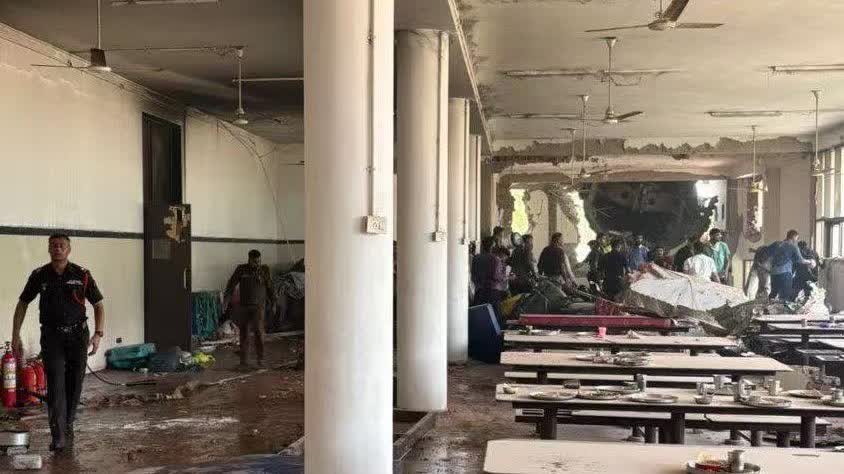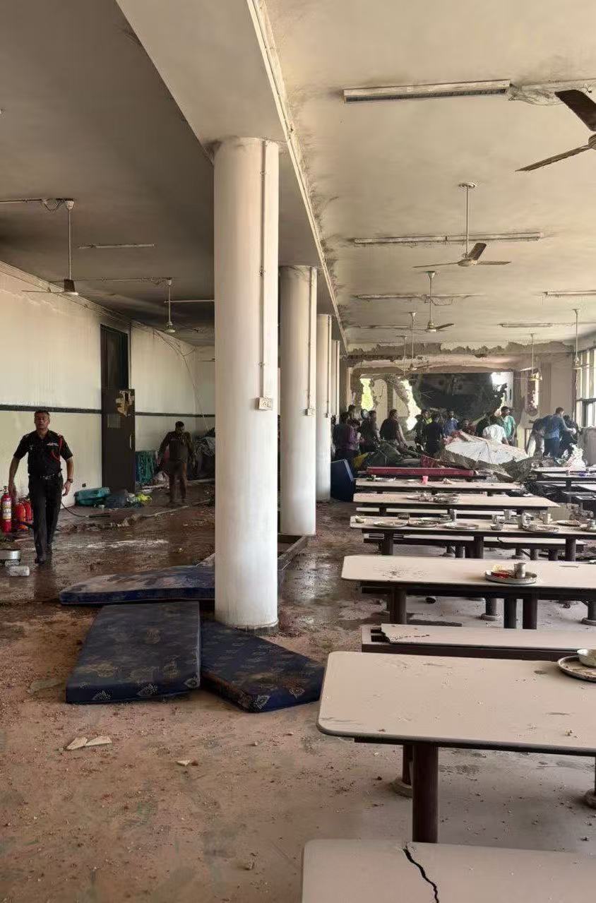 據網上消息和圖片,受擊中建築物為博士生公寓。現場一片狼藉,牆體嚴重受損,黑煙四起。