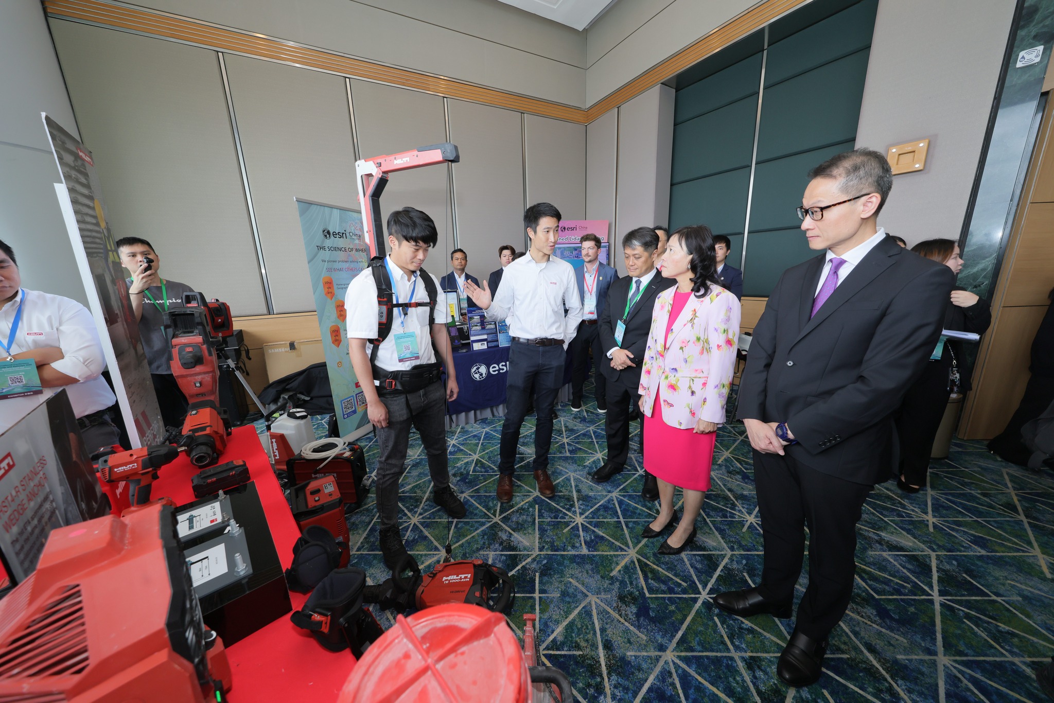 陳美寶、運輸及物流局常任秘書長蔡傑銘亦在路政署署長邱國鼎和香港公路學會會長梁偉豪陪同下,與年青工程師交流互動,了解業內新血對香港基建發展的願景和期許。陳美寶之後再到訪業界攤位參觀,了解業內在運輸基建的建設與維護上最新的科技應用。