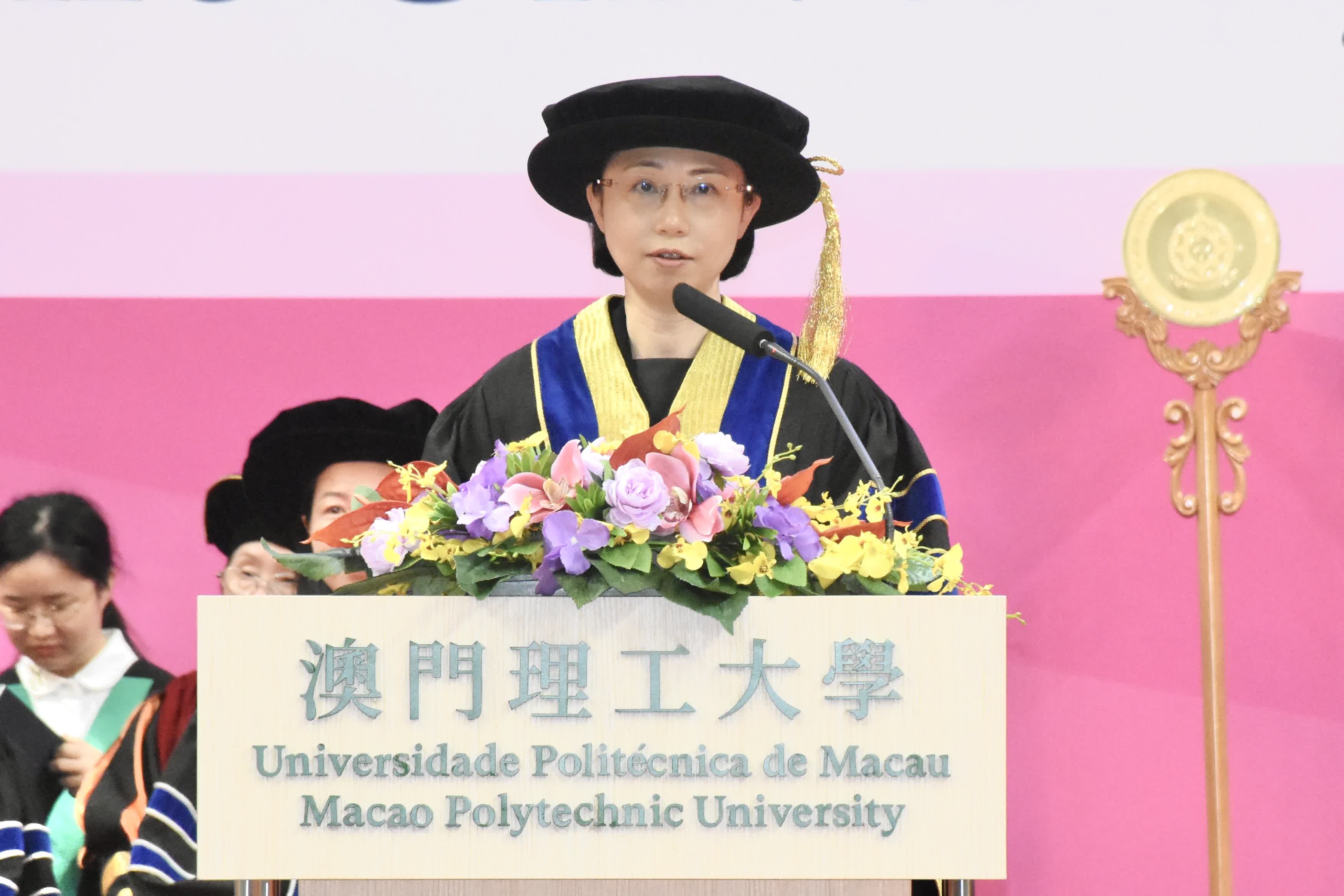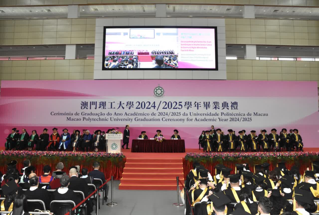 (大公文匯網 記者 鍾佩欣 澳門報道)澳門理工大學2024/2025學年畢業典禮12日舉行,1500多名博士、碩士及學士學位課程學生畢業,澳門社會文化司司長柯嵐在澳理大校董會主席崔世昌及校長嚴肇基陪同下主禮。中央政府駐澳門聯絡辦公室教育與青年工作部部長李雪飛、外交部駐澳門特派員公署綜合部主任郭曉峰、澳門特區政府教育及青年發展局局長龔志明,校董會成員、社會各界等出席。