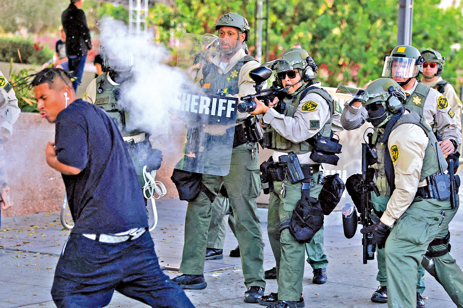 •按特朗普指令,約700名海軍陸戰隊士兵和約4100名加州國民警衛隊人員被部署至洛杉磯。國民警衛隊已開始支援聯邦執法人員,海軍陸戰隊士兵正在接受應對騷亂的訓練。得州州長阿博特12日在該州部署逾5000名國民警衛隊人員。