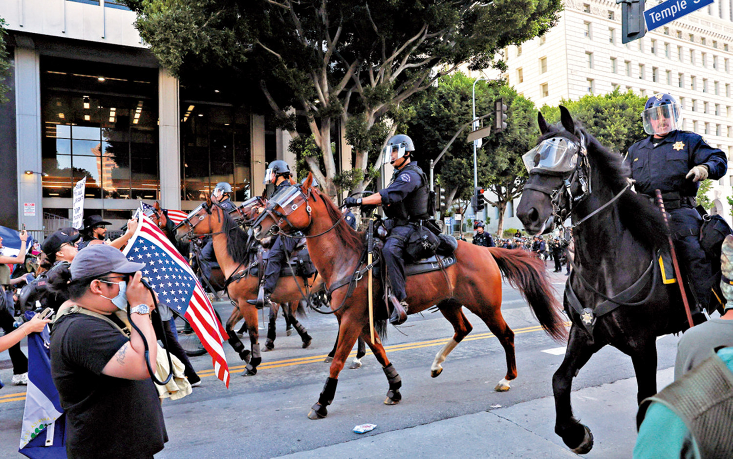 當地時間11日,洛杉磯繼續舉行反對聯邦執法人員搜捕非法移民的抗議活動,示威者封堵市政中心多條街道。洛杉磯當局出動騎警驅散示威者,並向人群發射閃光彈和泡沫彈。洛杉磯市長巴斯11日晚在社交媒體宣布,市中心繼續實施宵禁,以阻止破壞和搶劫。洛杉磯警察局表示,宵禁首晚,警方在驅散示威者過程中逮捕逾200人,其中203人因拒絕疏散被捕,17人因違反宵禁被捕,另有數人涉嫌非法持有武器和襲警而被捕。