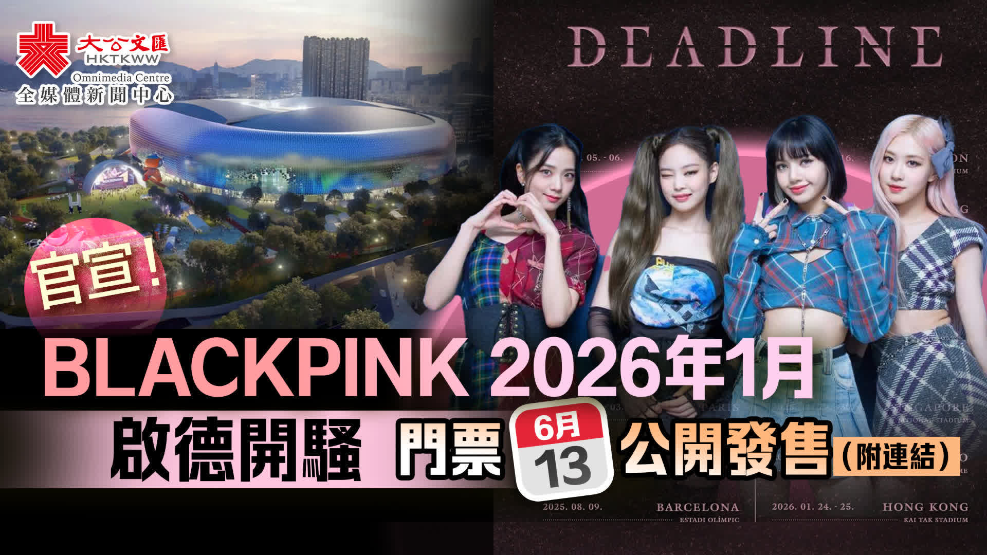 (大公文匯全媒體 記者 張芃芃)韓國女團BLACKPINK四位成員Jisoo、Jennie、Rosé和Lisa即將再次合體,舉行第三次世界巡迴演唱會《DEADLINE》,2026年1月24及25日在啟德主場館舉行兩場演唱會。