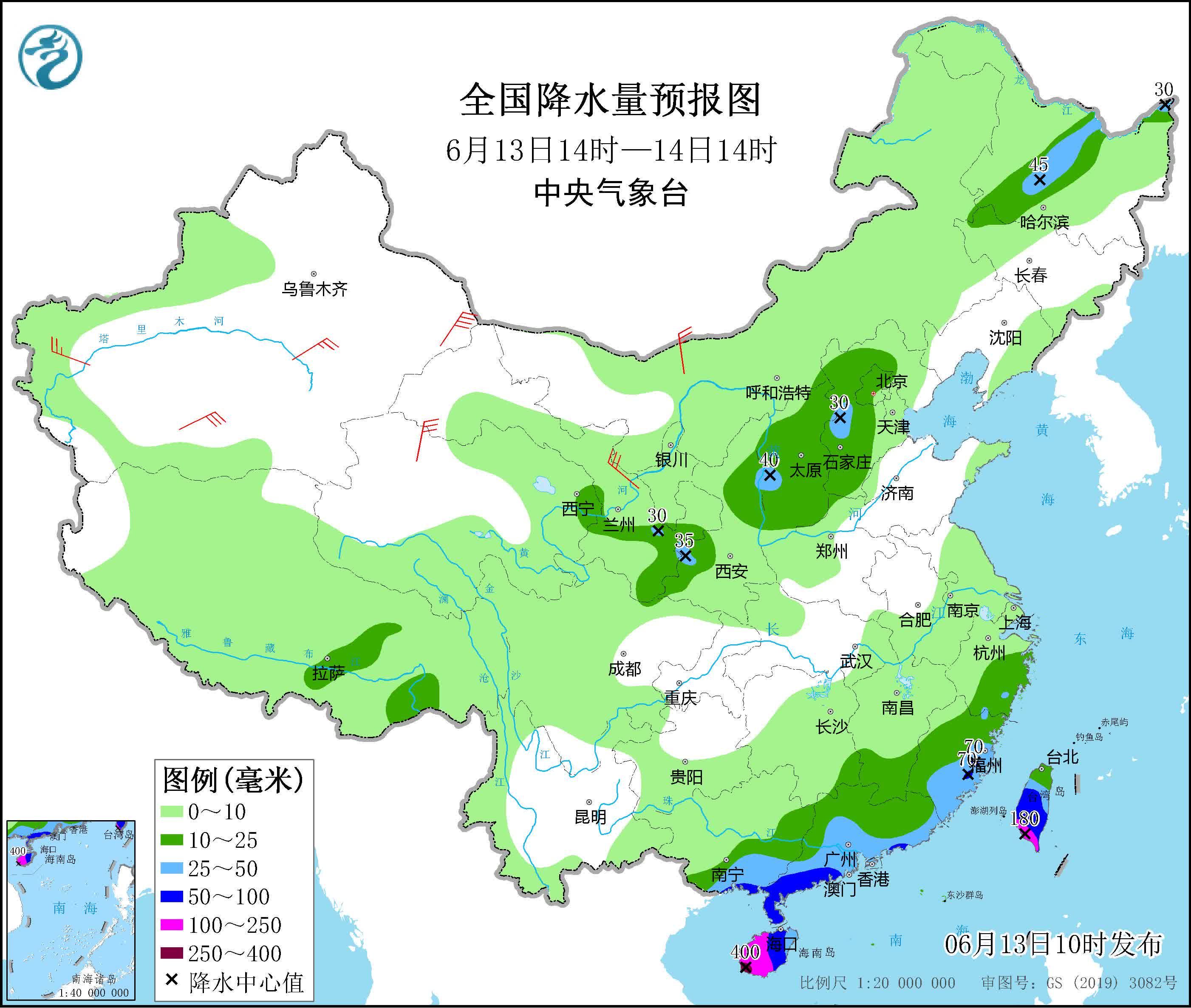 受其影響,昨日,海南島東南部、廣西中部、廣東中西部等地出現達到暴雨,局地大暴雨;廣東沿海等地出現8~9級大風,南海海域出現9~12級陣風。預計今天,廣西南部、廣東中南部、海南島、福建東部、浙江東部、台灣島等地部分地區有大到暴雨,其中,海南島南部、台灣島南部等地部分地區有大暴雨,局地特大暴雨(250~400毫米)。颱風中心經過的北部灣及海南西部沿海有9~11級大風,陣風12~14級。