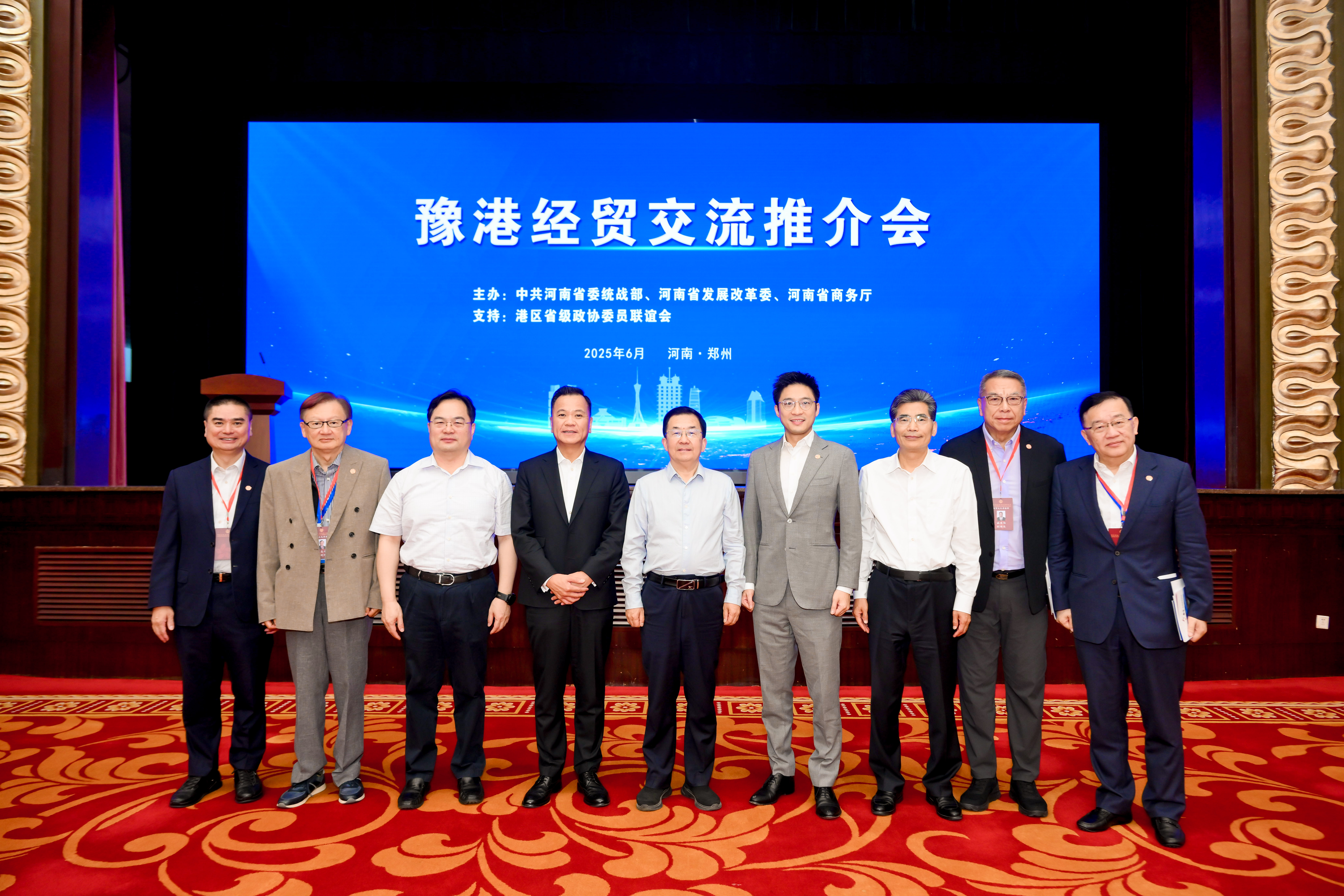 6月12日上午,港區省級政協委員聯誼會經貿文化考察團受邀參加河南省委統戰部、省發改委、省商務廳主辦的專場豫港經貿交流推介會。河南省委常委、統戰部部長張雷明出席,副省長劉玉江致辭,省政協副主席王戰營也出席了推介會。