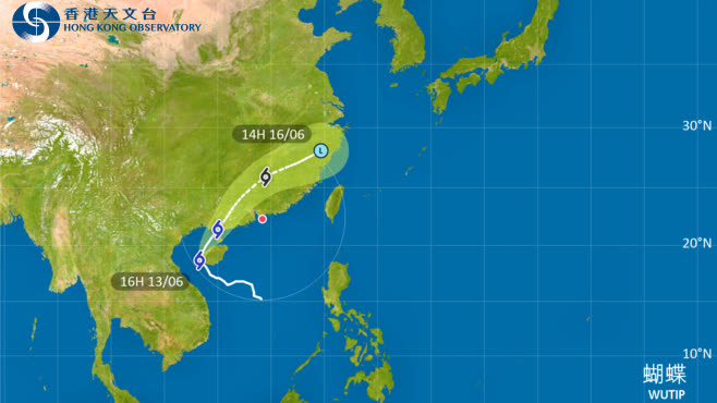 天文台指,與強烈熱帶風暴蝴蝶相關的狂風驟雨正影響廣東沿岸。預料蝴蝶會在今晚至明早(14日)橫過北部灣,大部分時間與本港保持約500公里或以上距離,一號戒備信號會至少維持至明日中午。