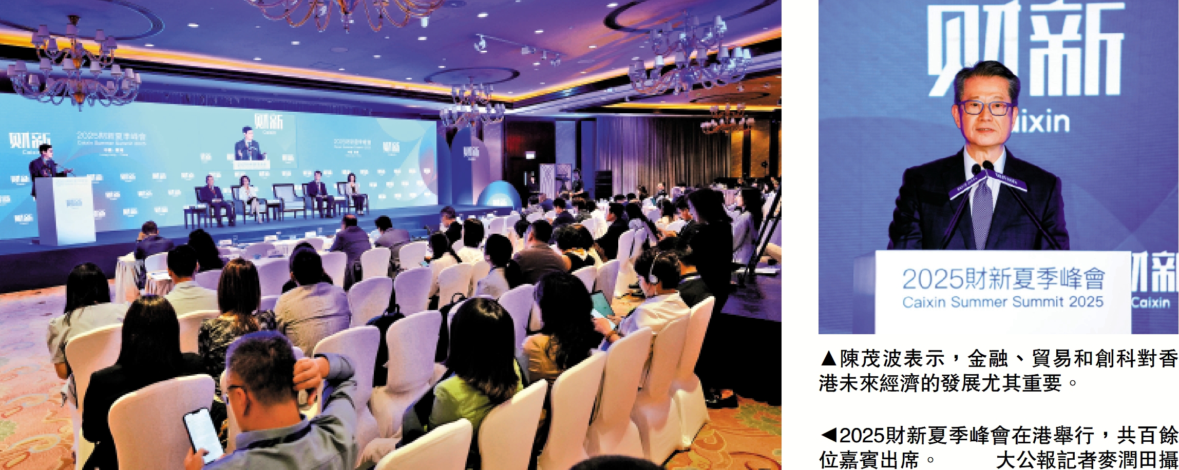 (大公報記者 麥晉瑋)2025財新夏季峰會昨日在港舉行,百餘位國際國內政要、全球商界領袖、權威專家學者圍繞世界經貿發展、金融市場、中企出海、綠色轉型、科技創新等議題交流觀點,共商發展機遇。財政司司長陳茂波發表主旨演講表示,大量資金湧入香港,反映國際投資者對香港資本市場充滿信心。同時間,香港在資產管理和綠色金融屬亞洲領先,估計2027年將會成為全球最大的跨境資產和財富管理中心。