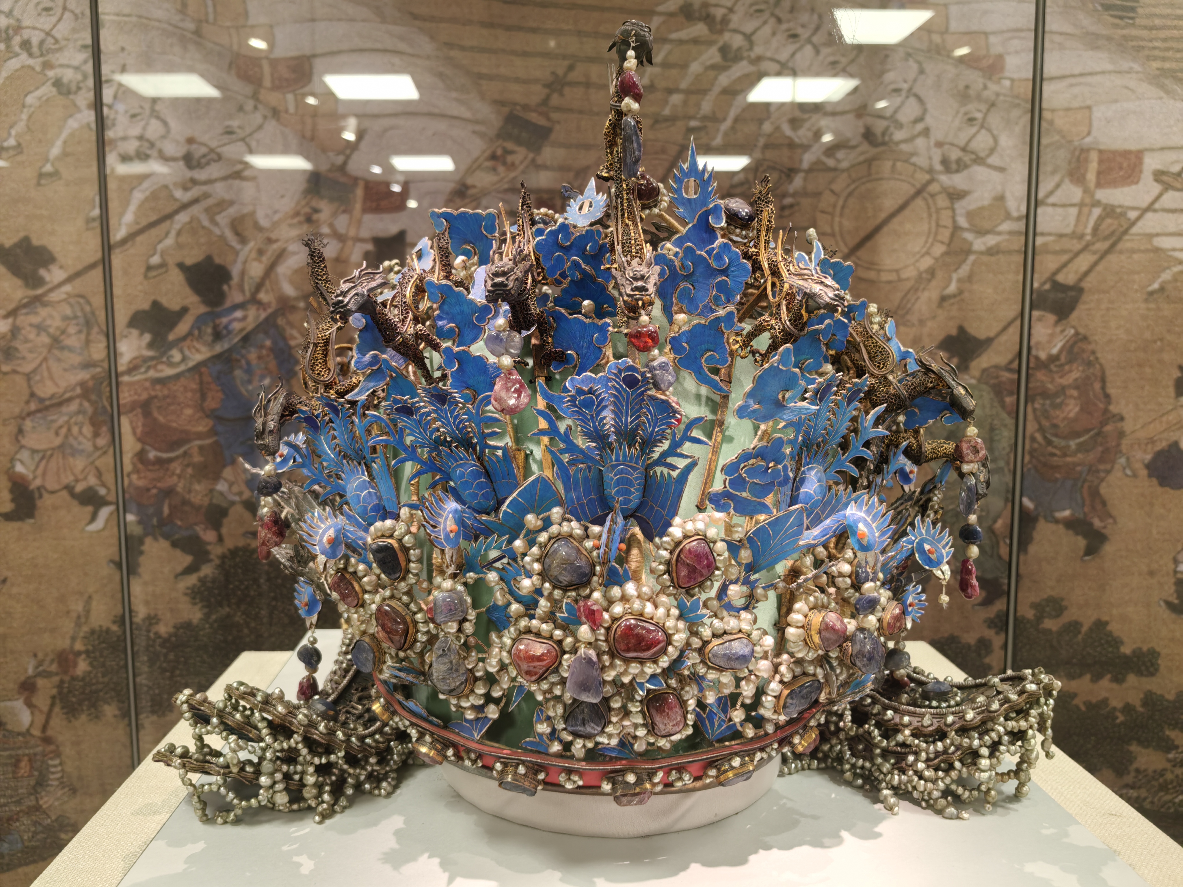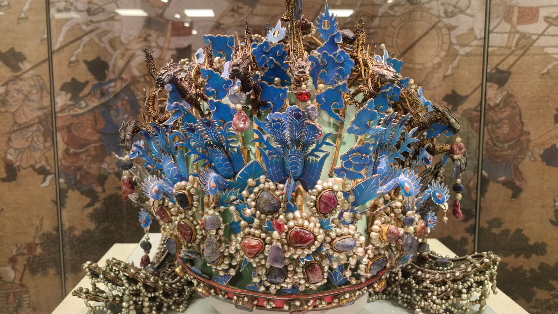 「印象大明 世遺華章」明代文物主題展在全球明文化交流中心同期舉行,百件明朝珍貴文物亮相。展區內,一件展品尤為引人注目,它就是我國迄今為止出土的唯一一頂皇帝金冠——金翼善冠。這頂金冠重826克,工藝精湛,造型莊重,彰顯着帝王的威嚴與尊貴。而孝靖皇后王氏的十二龍九鳳冠同樣璀璨奪目,冠上龍鳳栩栩如生,珠寶鑲嵌熠熠生輝,盡顯皇后的華貴與榮耀。萬曆皇帝喝酒用的金爵靜靜地陳列在展櫃中,金爵造型優美,線條流暢,通體金光閃閃,盡顯皇家的奢華與氣派。一同展出的還有定陵出土的14件鑲珠寶金帶飾,這些金帶飾工藝複雜,鑲嵌着各色珍寶,交相輝映,反映了明朝宮廷服飾的奢華與精美絕倫。此外,明朝皇帝的常服冠戴烏紗翼善冠也在展覽之列。根據明十三陵全域開放計劃,到2030年將實現主體陵寢全面開放,構建83平方公里遺產地全域文旅發展格局。