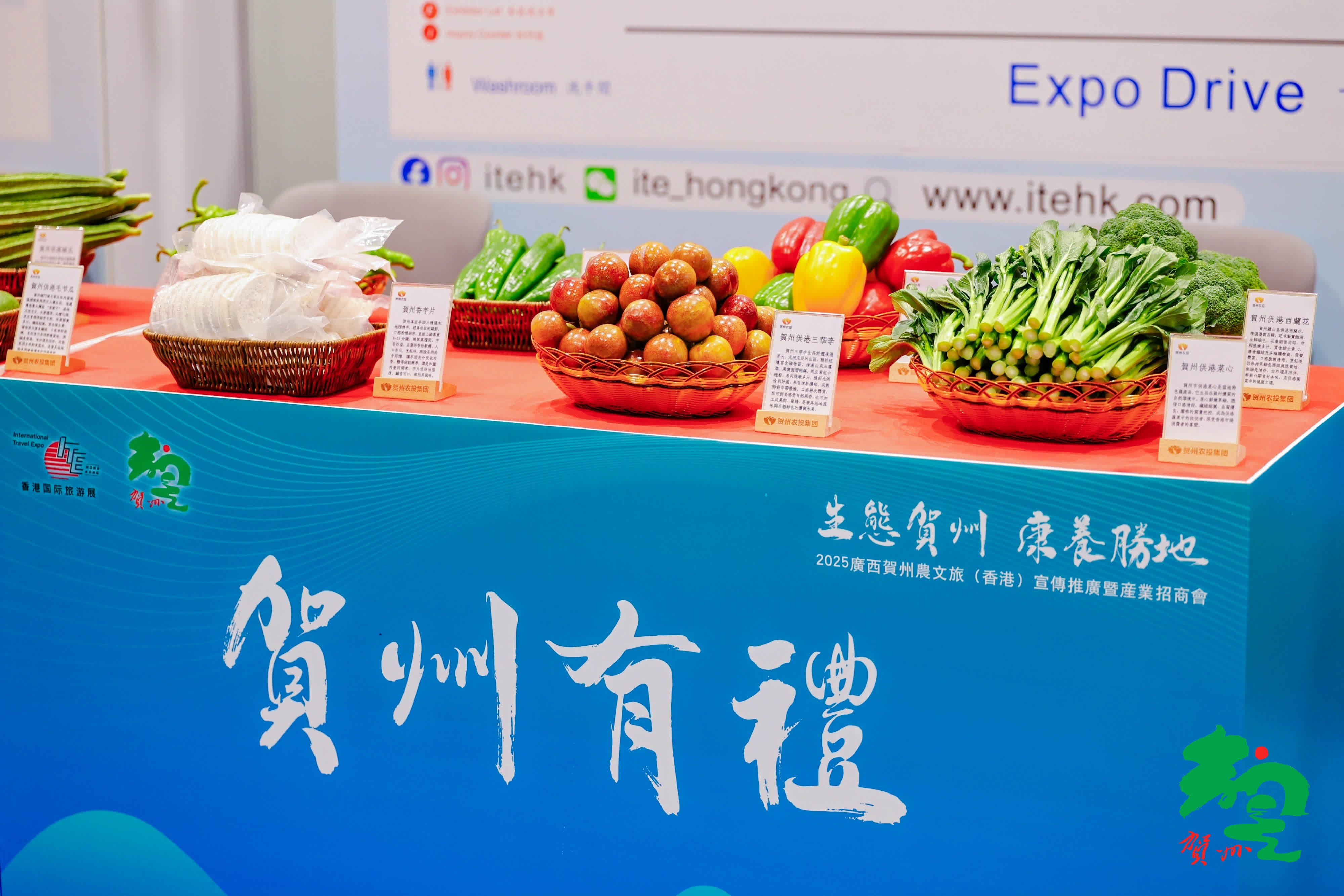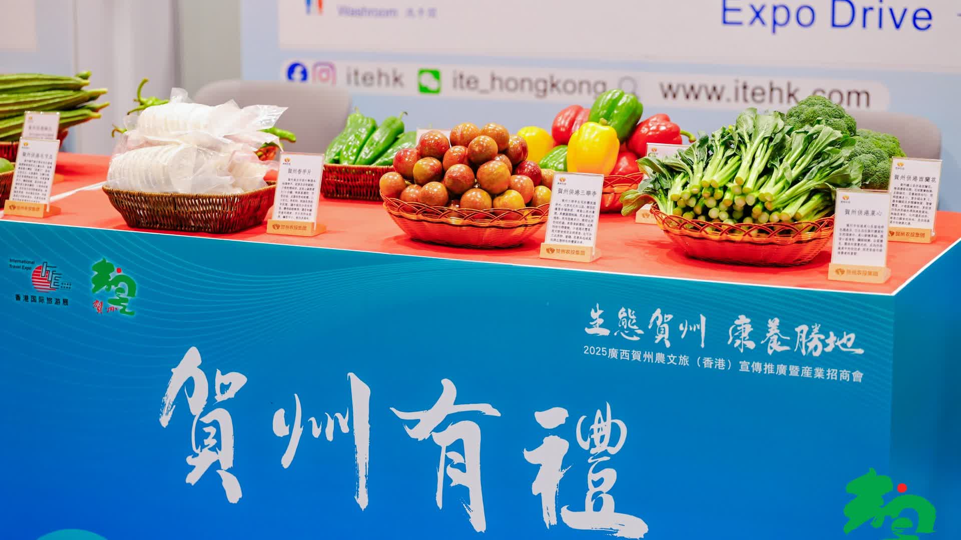 「生態賀州 康養勝地」2025廣西賀州農文旅(香港)宣傳推廣暨產業招商會正在第39屆香港國際旅遊展期間舉行。6月14日上午,在香港國際會展中心,具有廣西賀州瑤族民族風情的舞蹈《瑤族迎客歌》、莫也組合的原創歌曲《南門外》、《醉歌》吸引港人駐足觀看。賀州香芋、大平腐竹、六堡茶等特色農文旅產品,為港人帶來一場舌尖康養之旅,體驗「世界長壽市」的生態饋贈。