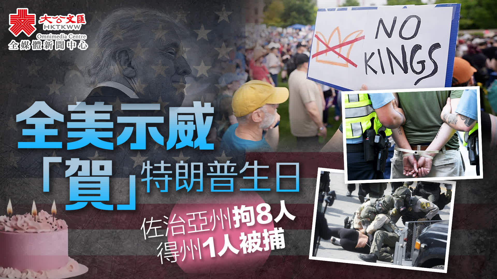 大公文匯全媒體報道,美軍於當地時間上周六(6月14日)在華盛頓舉行閱兵,紀念美國陸軍建軍250周年,當天亦是總統特朗普79歲生日,全美各地爆發旨在反對特朗普的「無王日(No Kings)」示威活動,總體和平,但佐治亞州爆發警民衝突8人被拘,得州警方則拘捕1人。