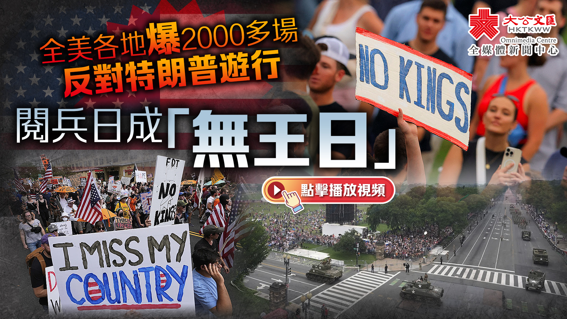 大公文匯網報道,美軍於當地時間6月14日在華盛頓舉行閱兵,紀念美國陸軍建軍250周年,當日亦是總統特朗普79歲生日,全美各地爆發2000多場反對特朗普政府的「無王日(No Kings)」抗議活動。數百萬民眾上街遊行,包括紐約、芝加哥、洛杉磯、華盛頓、聖地牙哥和亞特蘭大等城市,成為特朗普就任以來,美國規模最大、最強烈的抗議活動,凸顯了美國嚴重的政治分歧。一起通過現場影片來感受全美民眾為特朗普「賀」壽的震撼!