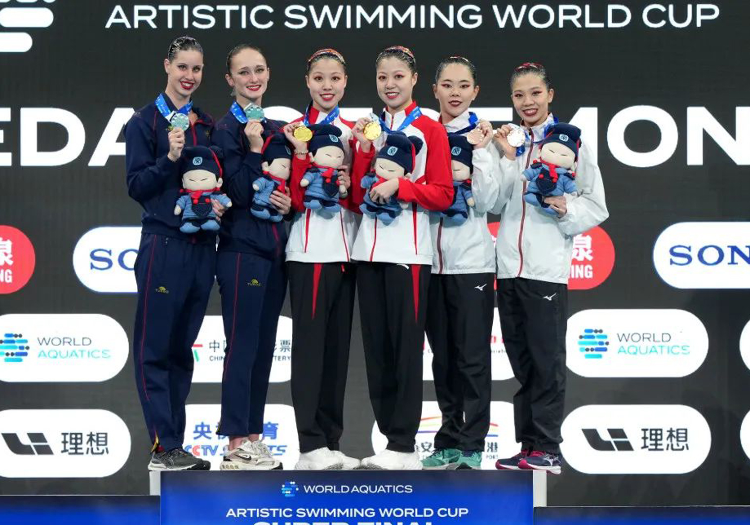 (大公文匯網記者 李陽波 西安報道)2025年世界泳聯花樣游泳世界盃總決賽6月15日在西安落幕。3天來,共有來自中國、英國、西班牙等16個國家的百餘名運動員參加11個項目的角逐。中國花樣游泳隊發揮出色,共奪得女子單人技術自選、女子雙人技術自選、集體技術自選、男子單人自由自選、女子雙人自由自選、集體自由自選、集體技巧自選7個項目的金牌,同時還獲得3銀1銅,位居金牌榜和獎牌榜榜首。