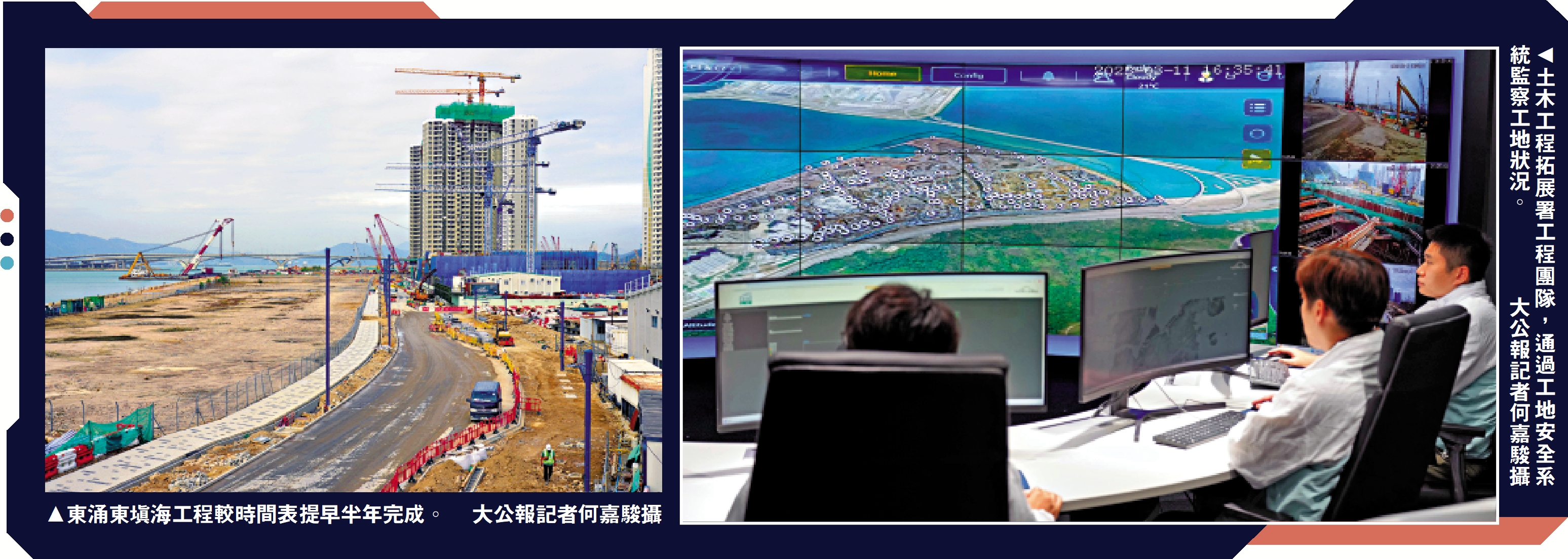 (大公報 記者 劉碩源)AI(人工智能)應用在香港不斷普及,政府的工務工程項目亦能見到AI身影。土木工程拓展署藉AI及創新科技,提升工地安全及生產力,令東涌東填海工程提前半年完成。