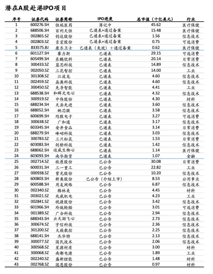 朱正芹認為,A股上市公司的池子足夠大,即使是現在確定赴港上市的A股公司,也可以延續很長一段時間。