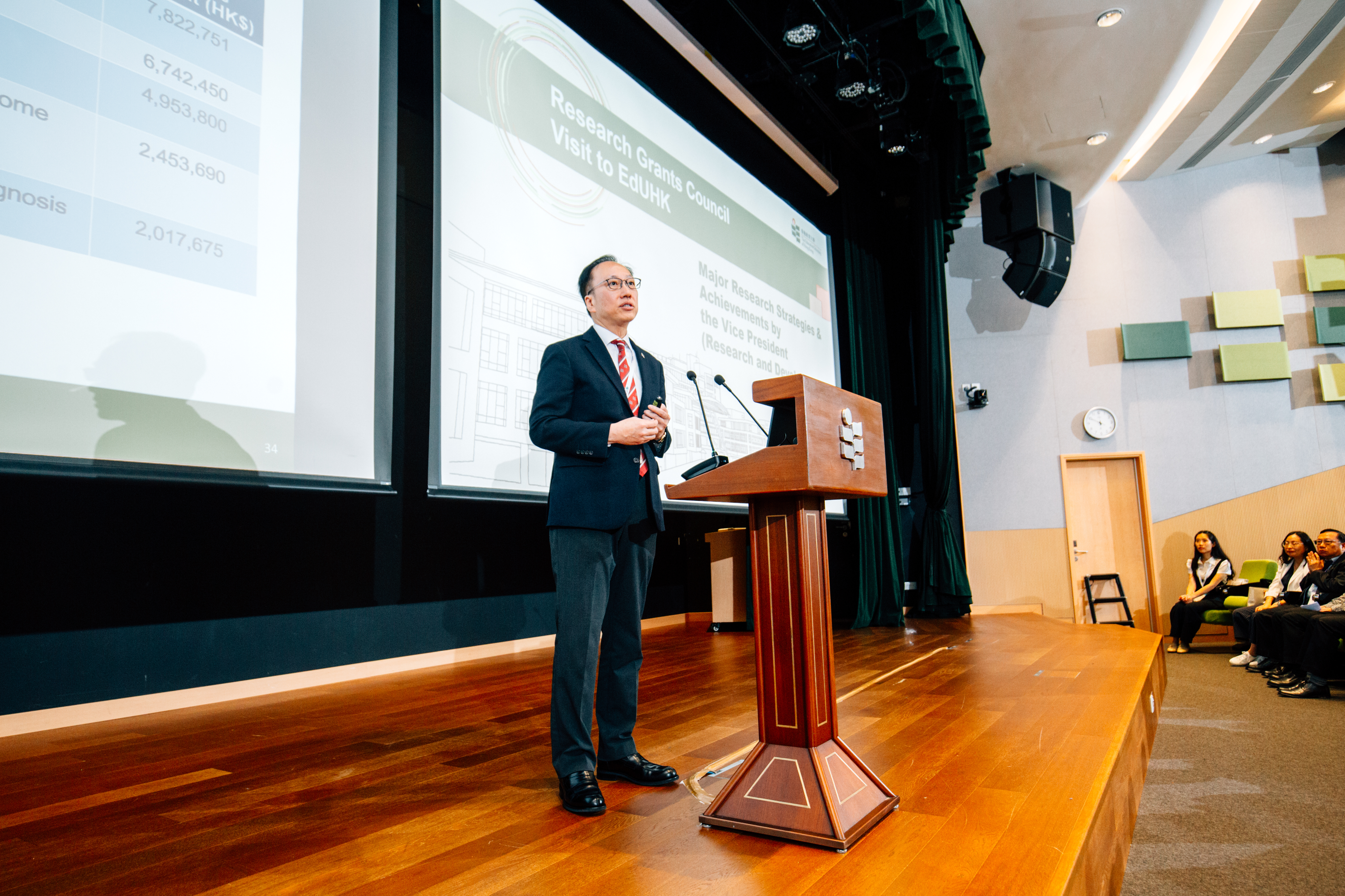 當日以研資局主席唐偉章教授的致辭為活動揭開序幕。隨後,教大校長李子建教授介紹了大學的最新策略發展計劃及研究概況,教大副校長(研究與發展)陳智軒教授則重點闡述當前的研究方向及成果影響。