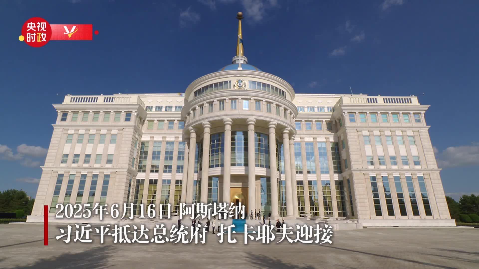 據央視新聞消息,當地時間6月16日下午,國家主席習近平在阿斯塔納總統府同哈薩克斯坦總統托卡耶夫舉行會談。會談前,兩國元首握手合影。