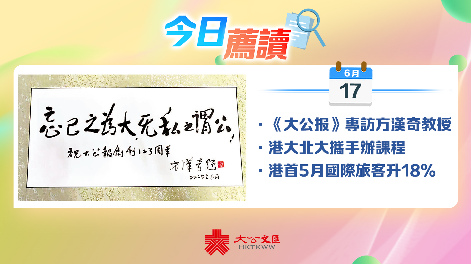 我們的編輯團隊精心挑選了大公報和香港文匯報的優質版面和大公文匯網的優秀文章,為你呈上最美味的新聞大餐。