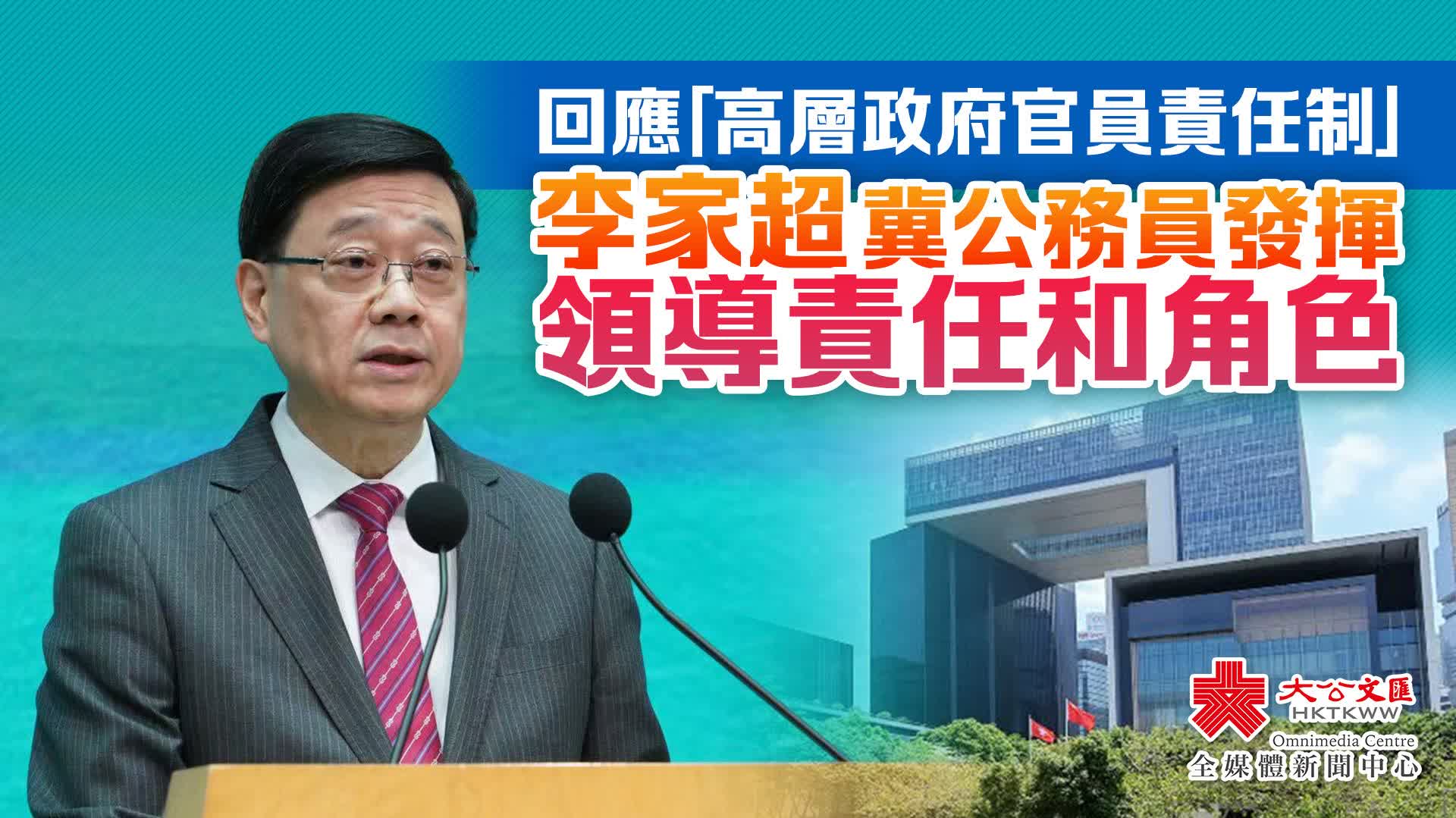 李家超表示,已委派政務司司長陳國基領導研究。他希望,「高層政府官員責任制」與政治任命官員問責制的融合能加強整體治理水平,提升官員的領導能力和素質,進而提高公務員隊伍的整體效率。
