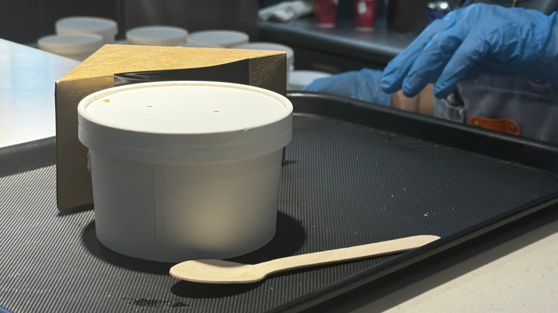 至於一些杯、蓋如果要用紙製,邱金榮指有同事曾嘗試使用,可是現時技術尚未成熟,「同事都好唔方便」,現時的紙製餐具相對而言「容易濕到咁上下就軟,技術上仲未做到(全面替代)」。