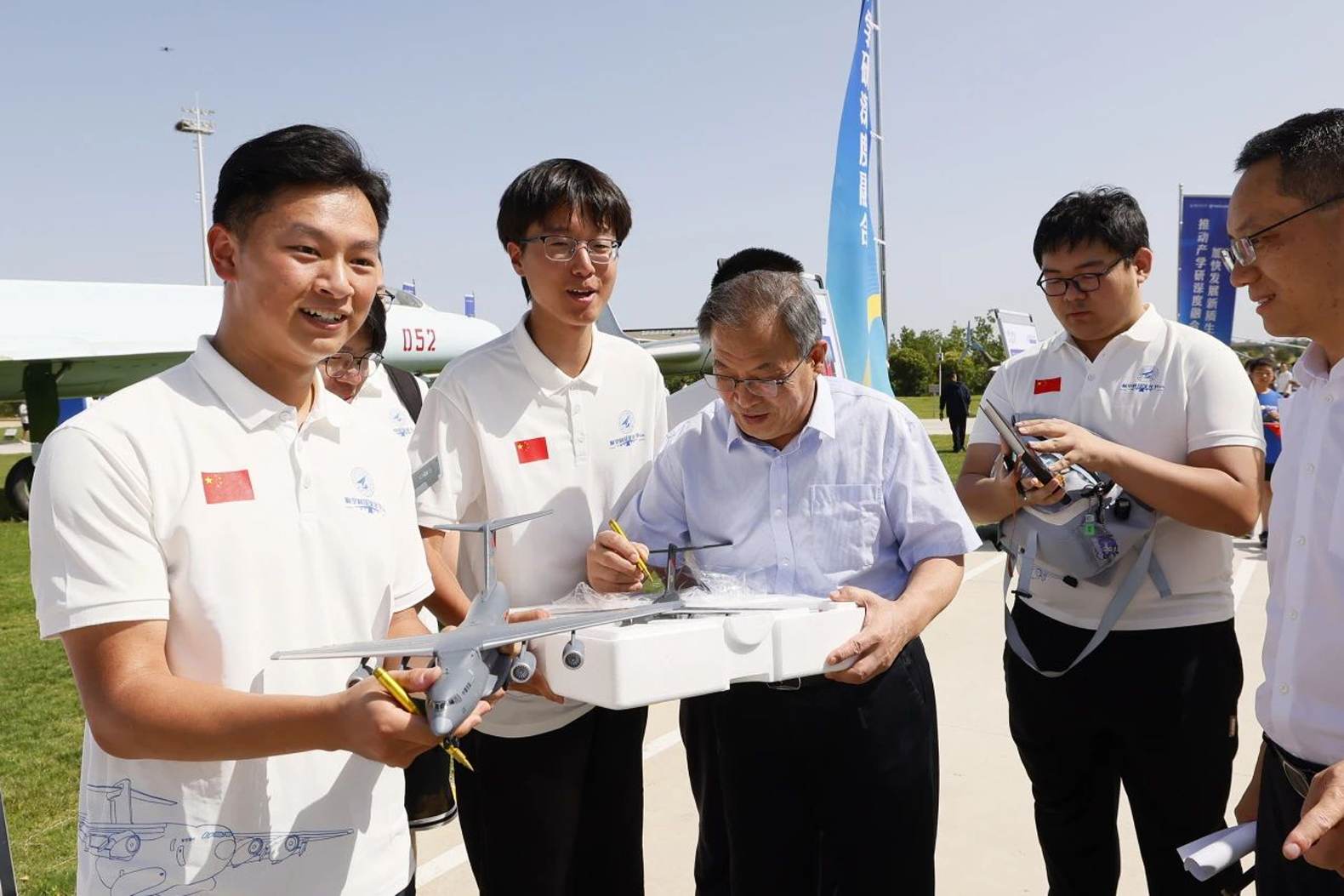 作為運-20總設計師,唐長紅院士的到來讓活動現場秒變大型「追星」現場,同學們紛紛圍住他索要簽名。唐長紅院士還在運-20物理樣機旁,以運-20研製歷程為主線,回顧了航空人攻堅克難的感人故事,為學生們帶來一場精彩生動的思政課。