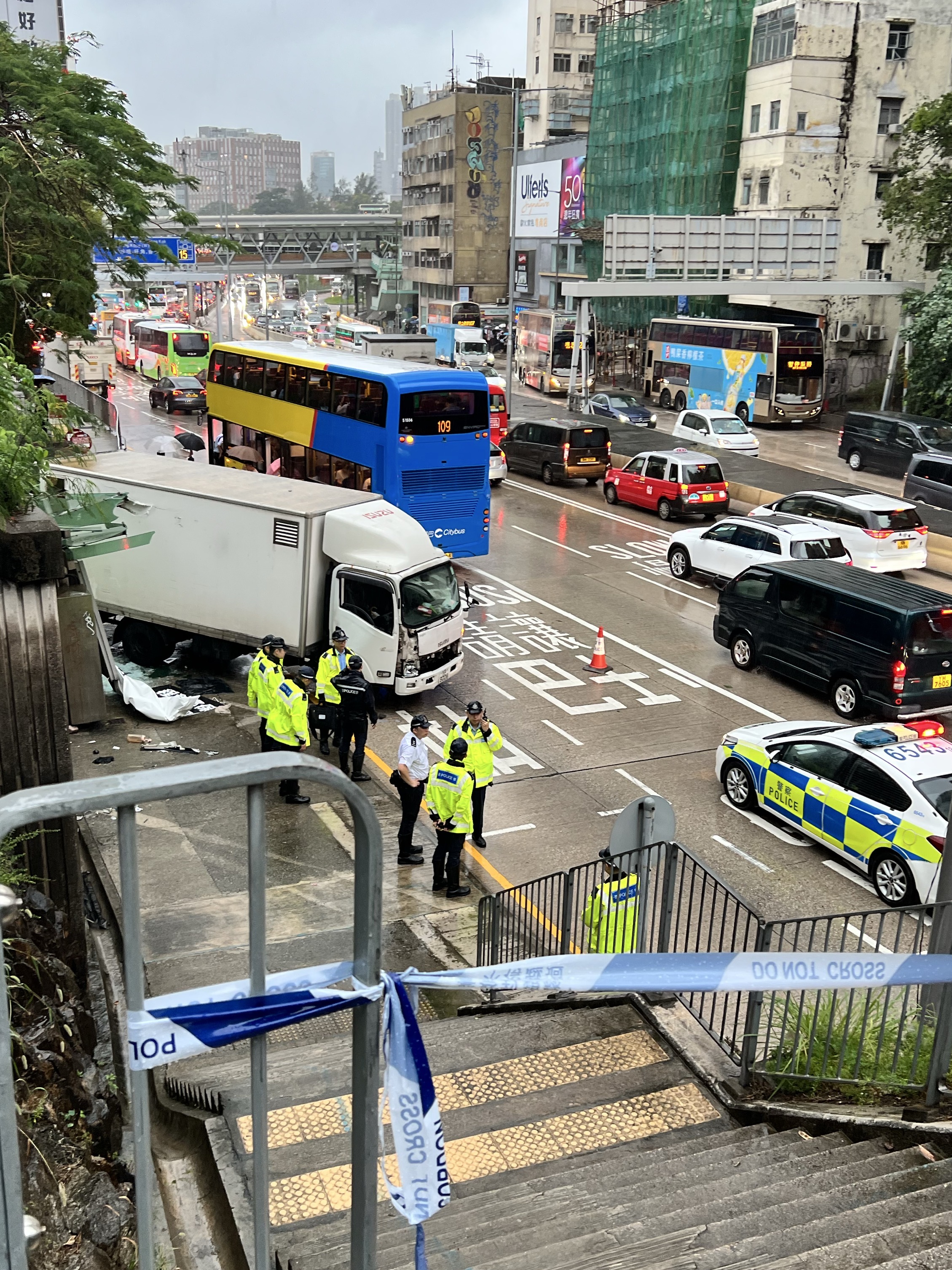警方指,事發今早6時32分,一輛中型貨車沿平治街南行,當駛至近佛光街一巴士站時,據報撞倒一名50歲女子及一名33歲女子,該名司機其後逃去。該名50歲女途人被困於車底,由消防救出。她頭部嚴重受傷,昏迷被送往伊利沙伯醫院治理,於早上7時10分被證實死亡。該名30歲女途人手及腳受傷,清醒被送往伊利沙伯醫院治理。