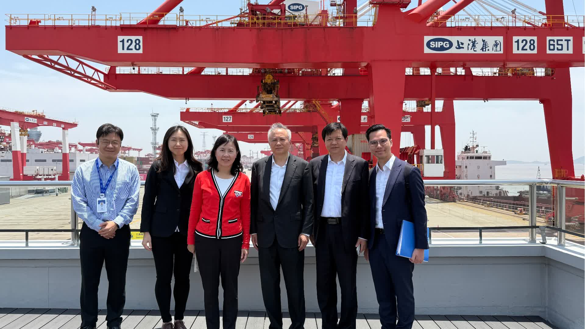 陳美寶今日(17日)到上海洋山港進行考察,了解自動化碼頭的運作。她表示,上海港和香港港口不約而同地朝着綠色化、數字化、智慧化方向發展,是次考察加深了雙方就港口高質量發展的交流,亦讓香港借鑒洋山港的經驗,促進與碼頭營辦商商討香港港口邁向智能化的路線圖。上海港以科技引領港口發展,她期待日後進一步深化與上海港的交流合作,鞏固提升香港作為國家「南大門」的實力。