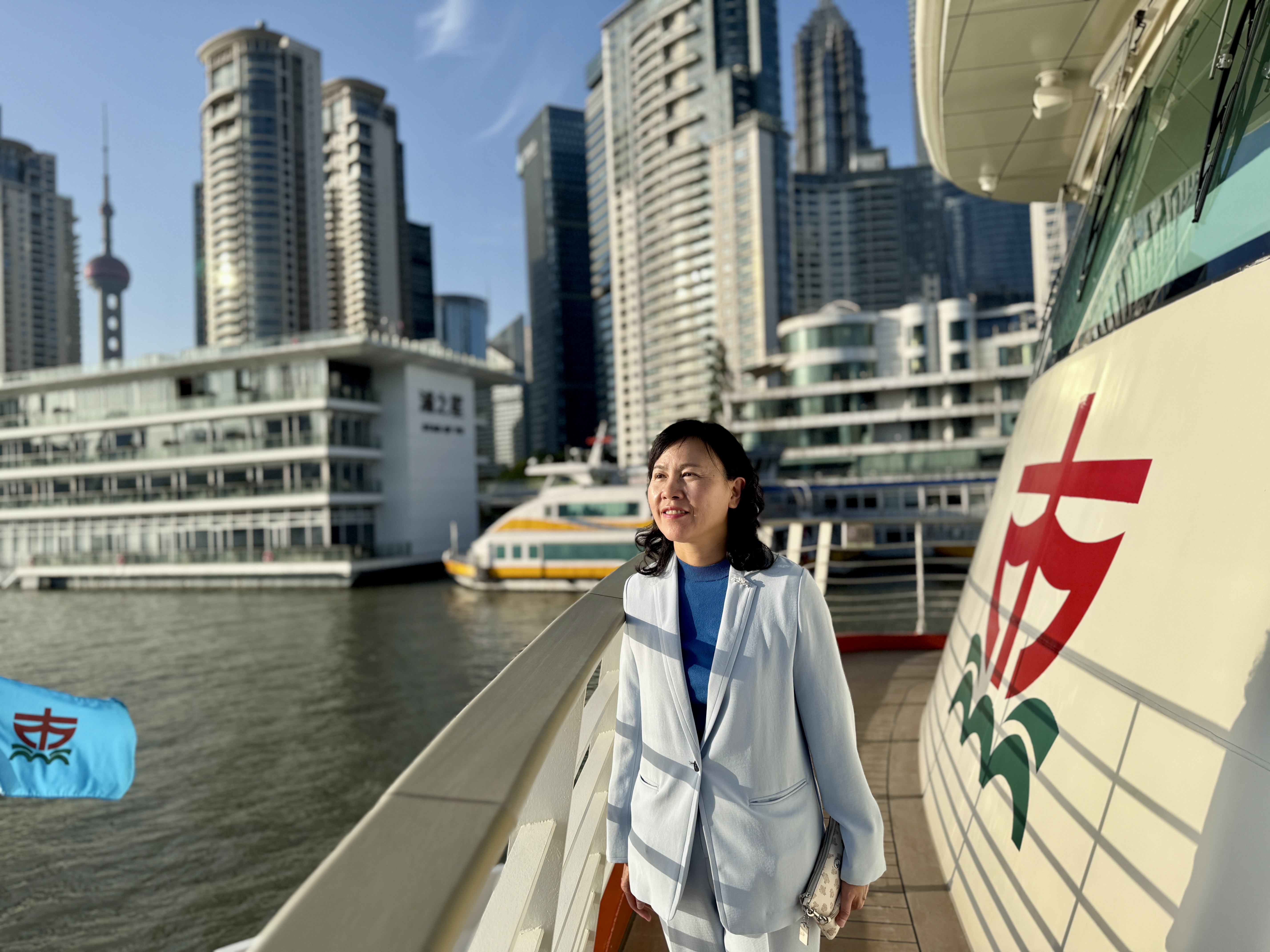 大公文匯全媒體報道,運輸及物流局局長陳美寶訪問上海兩日,就運輸物流等議題與當地官員及業界會面。她昨日(16日)抵埗後,先與上海市交通委員會主任於福林一行會面,就雙方關注的議題,包括交通運輸管理、航運、航空等交流意見,並參觀了4月開始營運的純電動渡輪,了解上海綠色交通的推展情況。