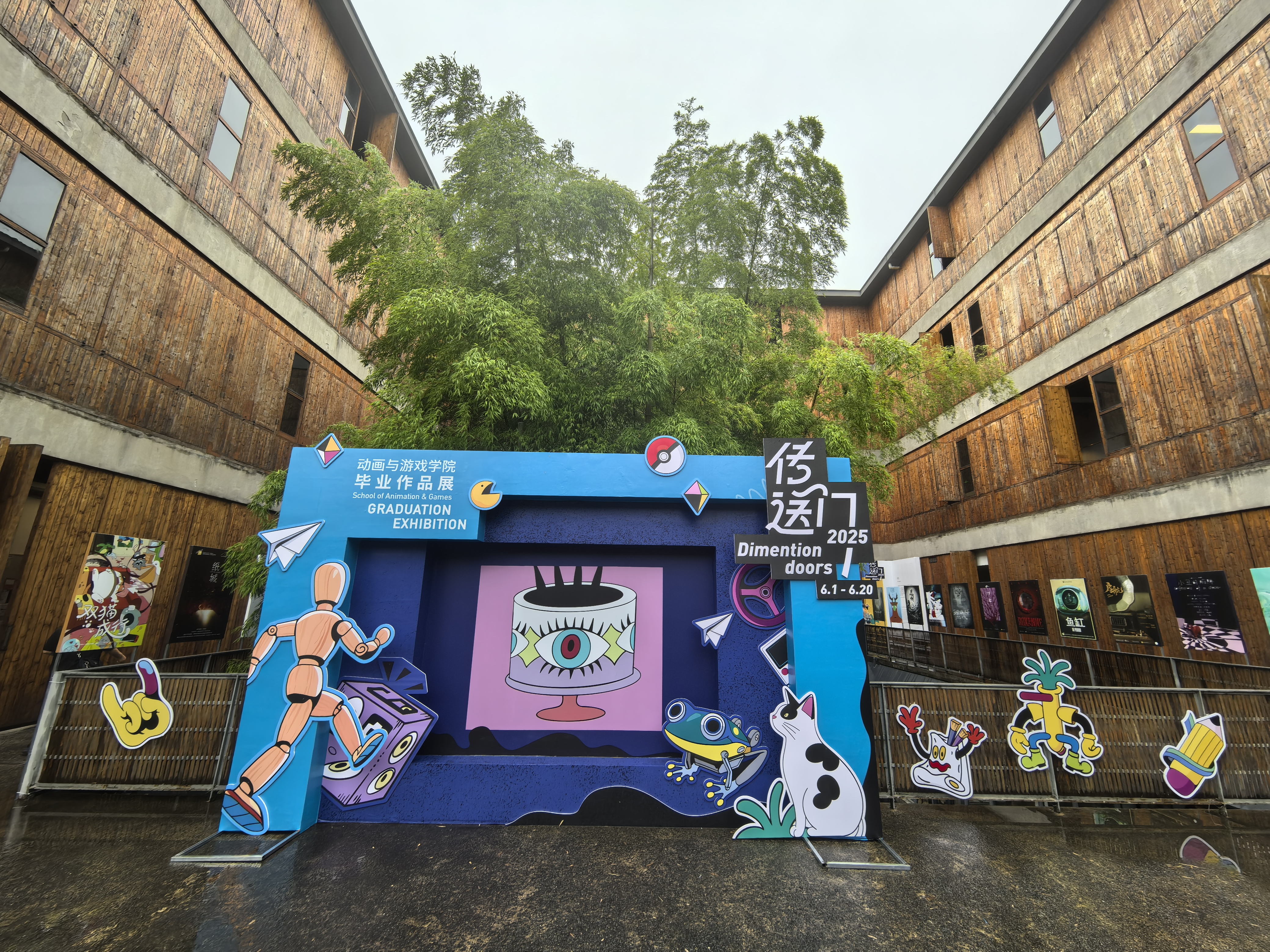 跨媒體藝術學院以「眾妙之門」為主題,展示114 位畢業生的畢業作品,展覽涵蓋開放媒體、媒介展演、實驗藝術、自由藝術、碩博板塊、當代藝術與策展研究六大專業板塊,作品類別涉及影像、裝置、表演、虛擬現實、遊戲等多種形式。其中媒介展演系以愛因斯坦的質能方程公式E=mc²作為畢業展主題,以此致敬1925至2025這個百年。呼籲每位畢業生都應該學習愛因斯坦,去尋找屬於每個人自己的質能公式。梅淑琦、汪洋的微縮模型和影像作品《蓋伊·福克斯之夜》在社交網絡上迅速走紅。作品中,辦公室和車站的微縮模型利用單面鏡的反射原理,創造出「無限迴廊」的視覺效果,使觀眾彷彿置身於一個無盡延伸的空間之中,引起了許多「打工人」和年輕人的共鳴。