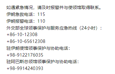 通知還說,如遇緊急情況,請及時報警並與使領館取得聯繫。