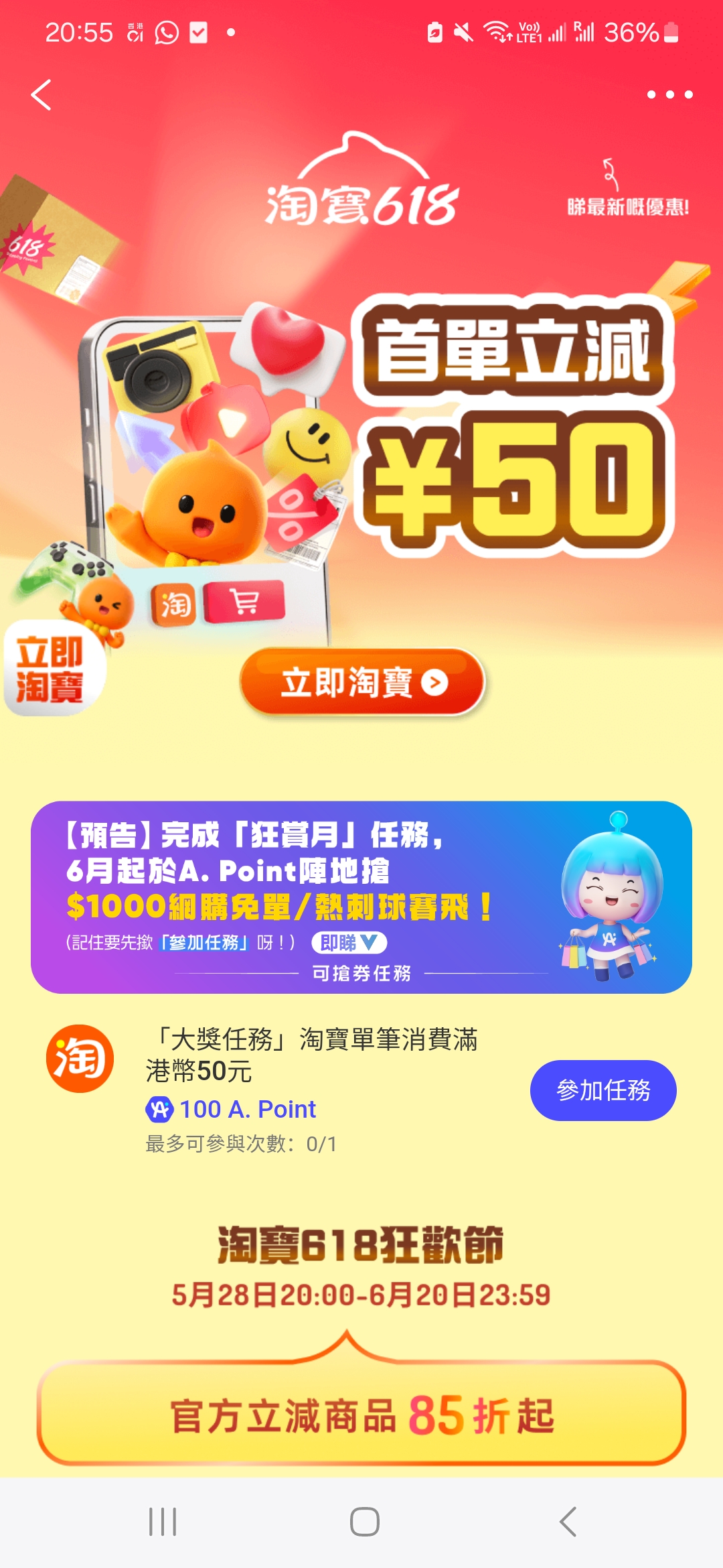 今年AlipayHK結合淘寶購物,推出一系列優惠活動,從5月31日開始至6月20日,用戶只要透過AlipayHK付款,無論是用餘額、信用卡還是新推出的Ant Bank PayLater,都有不同折扣和回贈機會。